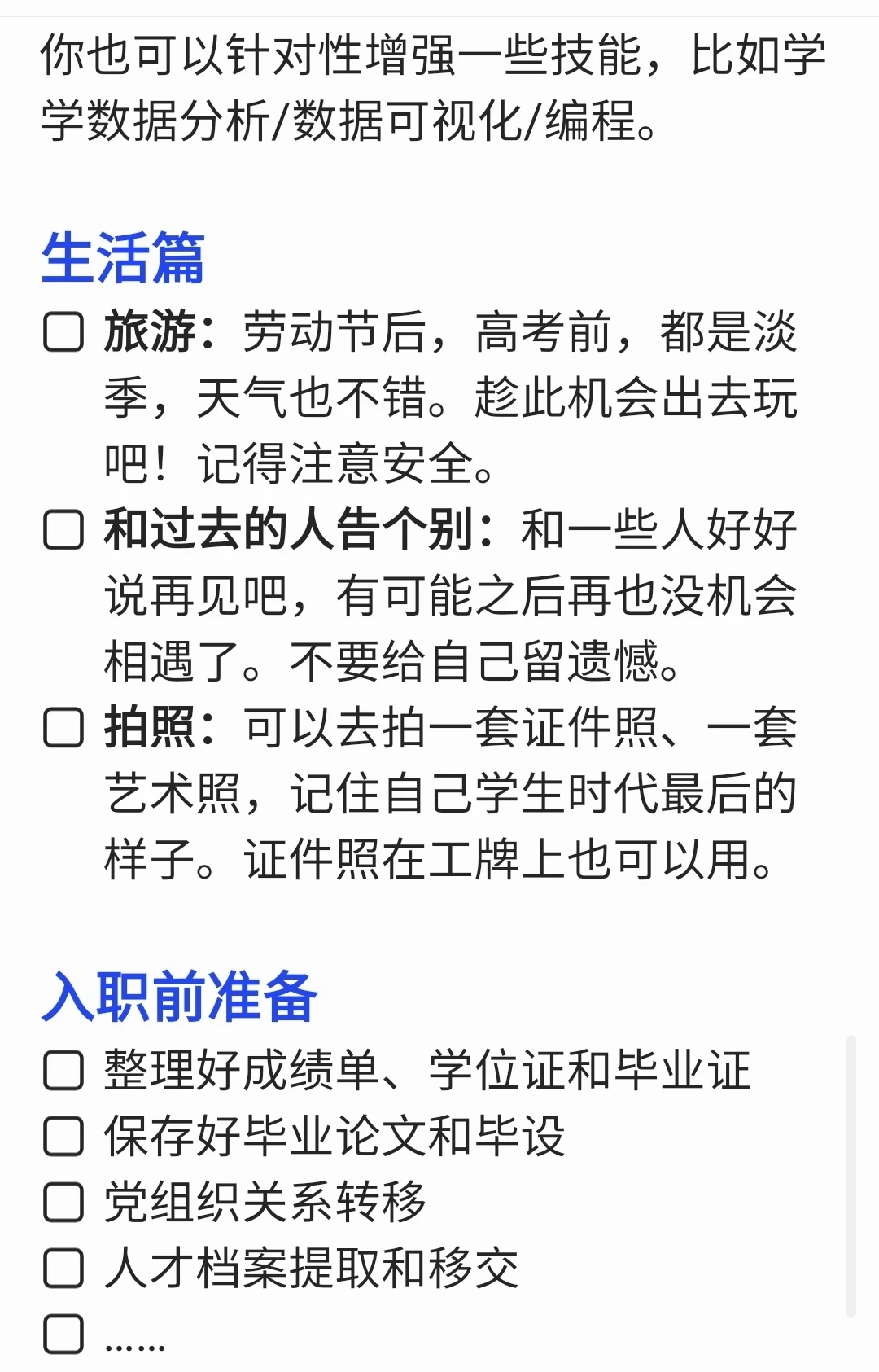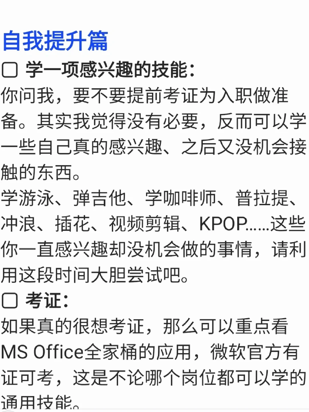 想写这篇文章的起因是,有妹妹来问我,7月入职前要不要再去尝试一下别的实习、或者考考证。
