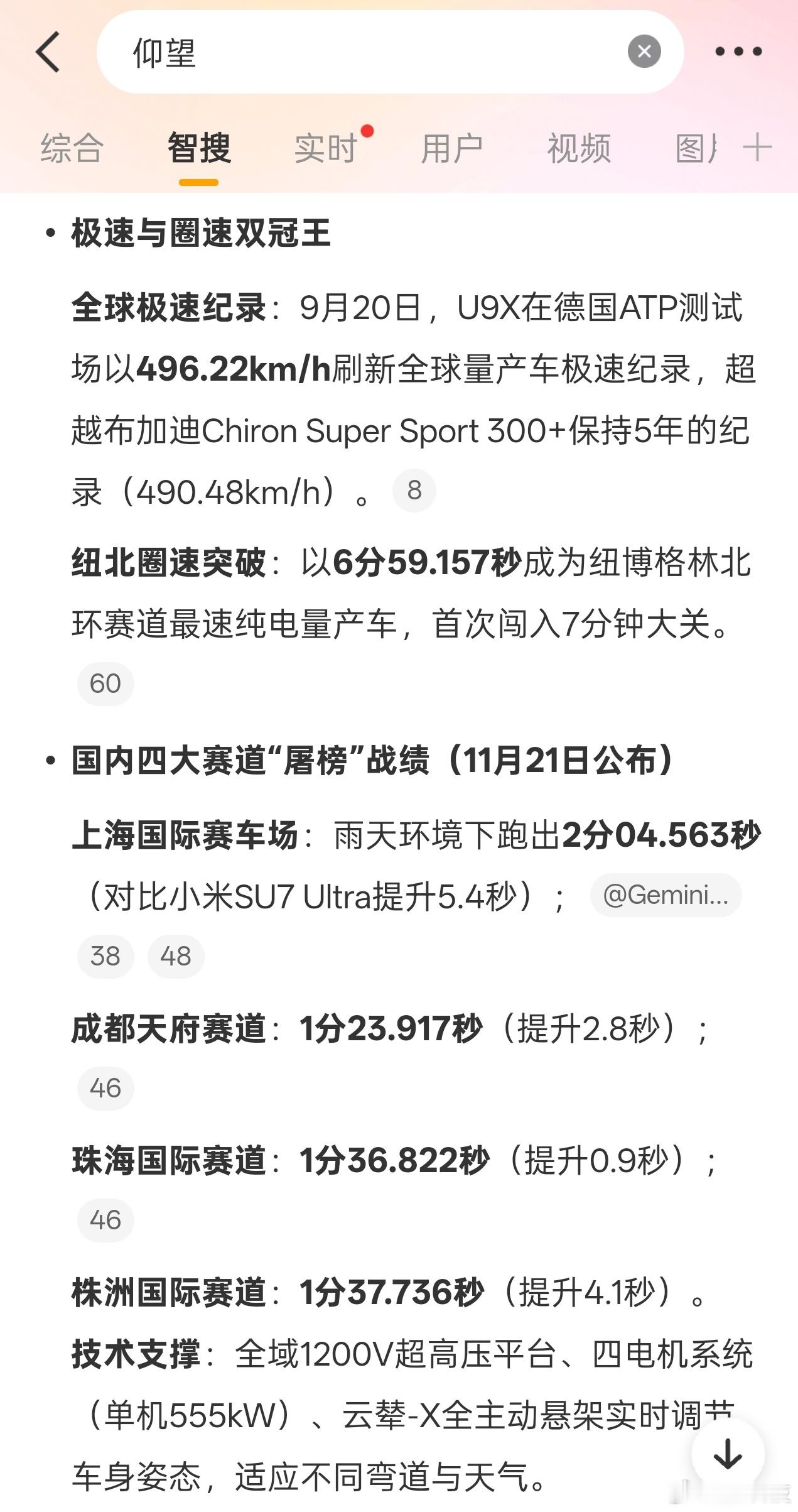 创造世界极速的仰望U9 Xtreme,编号02,中国速度,世界仰望,更是无可争议的极速和圈速双冠王,除了纽北圈速突破获得电车第一,国内四大赛道:上海国际赛车场、成都天府赛道、珠海国际赛道、株洲国际赛道皆是第一,论技术,还有谁不服?!