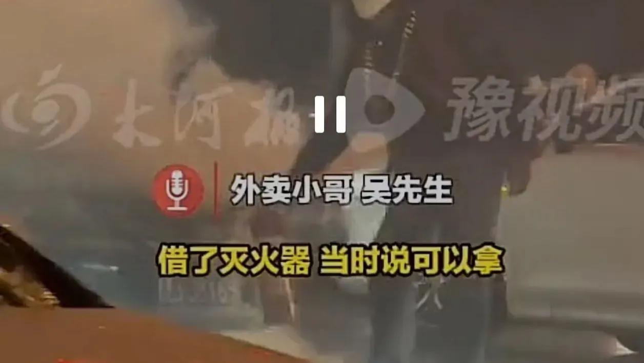 山东泰安。一车辆发生自燃,外卖小哥从附近警务室借来灭火器灭火,不料次日,被索赔2