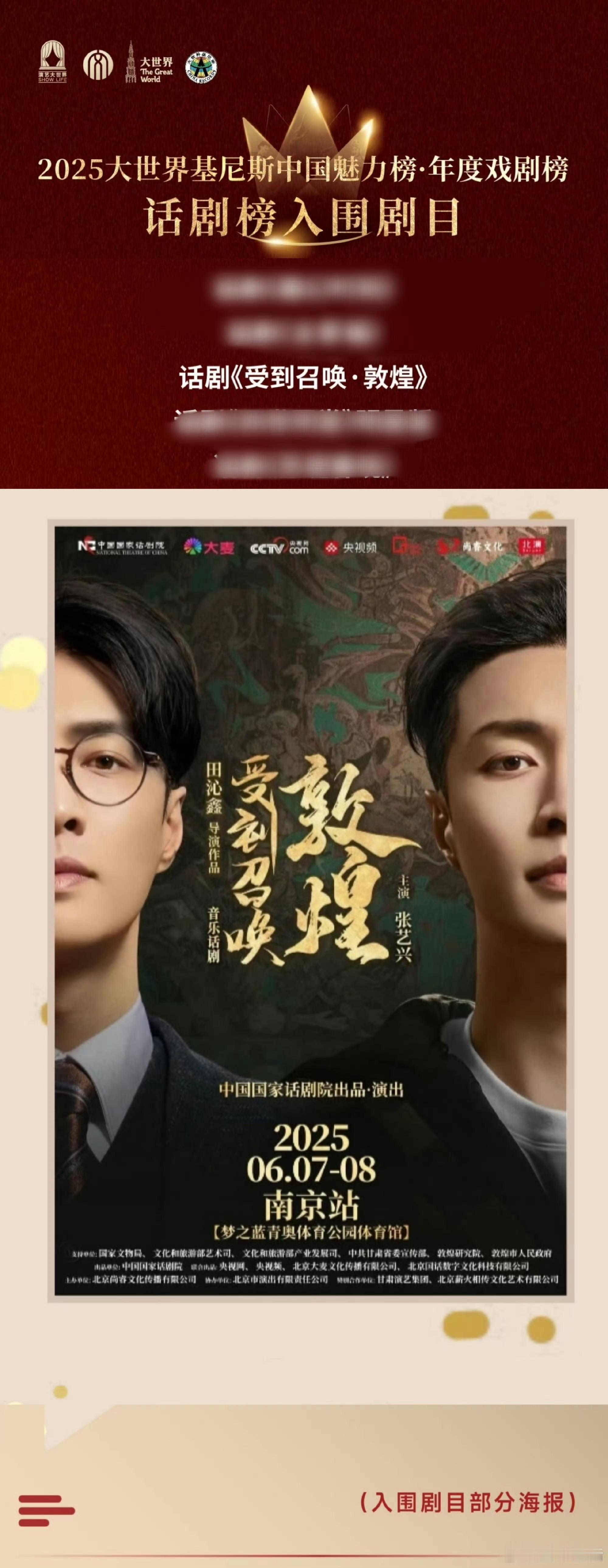 张艺兴《受到召唤敦煌》上海又上榜了!登上长三角文博会发布的【中国魅力榜年度戏剧榜】金榜 张艺兴各个领域都有佳作,不愧是全能型艺人!