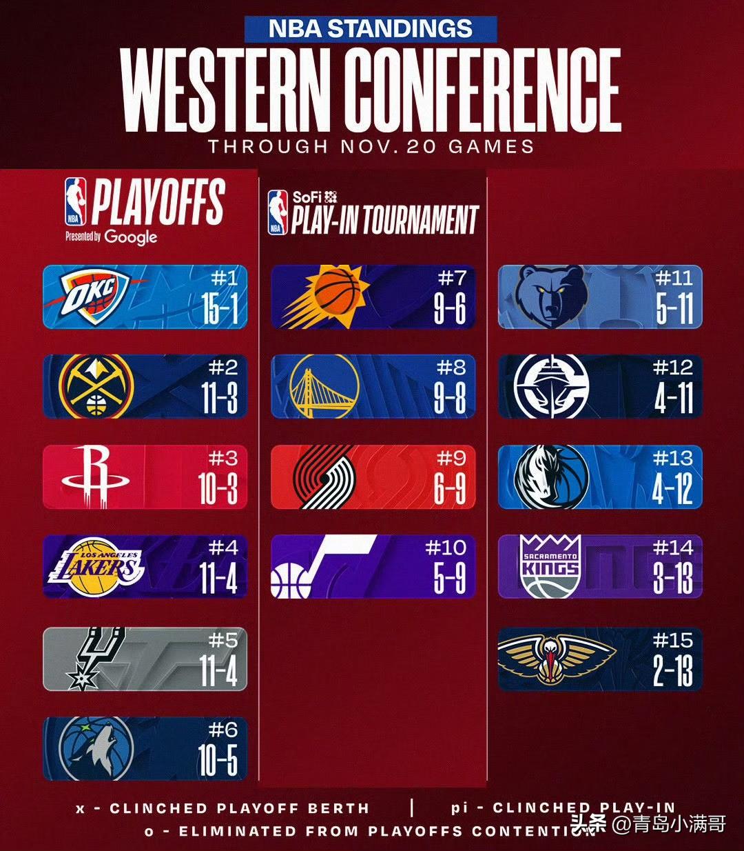 东西部最新排名!!!快船、国王再吃败仗,76人升至第六,马刺稳居第五! 北京时间11月21日,今天是周五了,比赛不多共计四场,明天是周末,NBA杯赛继续,大家可以悠闲地观看比赛了。 东部方面: 76人战胜雄鹿,76人升至第六,雄鹿第十一;老鹰不敌马刺,排名降至第八;魔术赢球了升至第九。 西部方面: 马刺赢球排名稳居第五;国王不敌灰熊,国王倒数第二,灰熊倒数第五;快船不敌魔术,排名西部倒数第四。 其他球队没什么大的变化,热火没有比赛,因为其他球队的变化他也来到了第五名,西部球队则是非常的稳健。 明天掘金和火箭的比赛非常值得期待,西部强强对话,而开拓者也有和勇气的比赛,说不定杨瀚森有机会登场呢! 快船队 nba最终排名 西部nba排名 NBA赛程密度 nba实力榜 NBA实力榜 火箭 丹佛掘金 金州勇士
