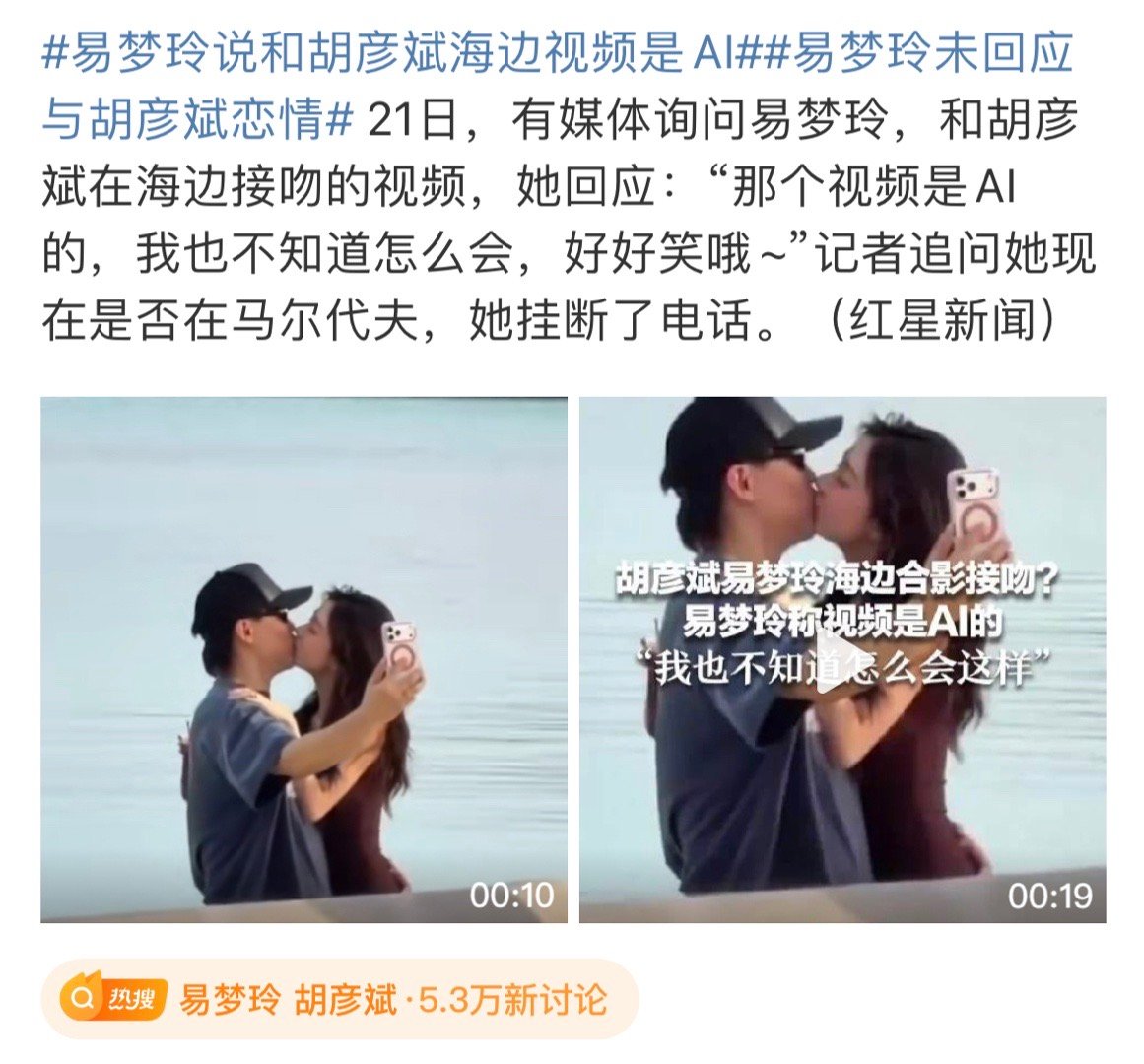 好离谱的回应易梦玲说和胡彦斌海边视频是ai?把网友当啥了?