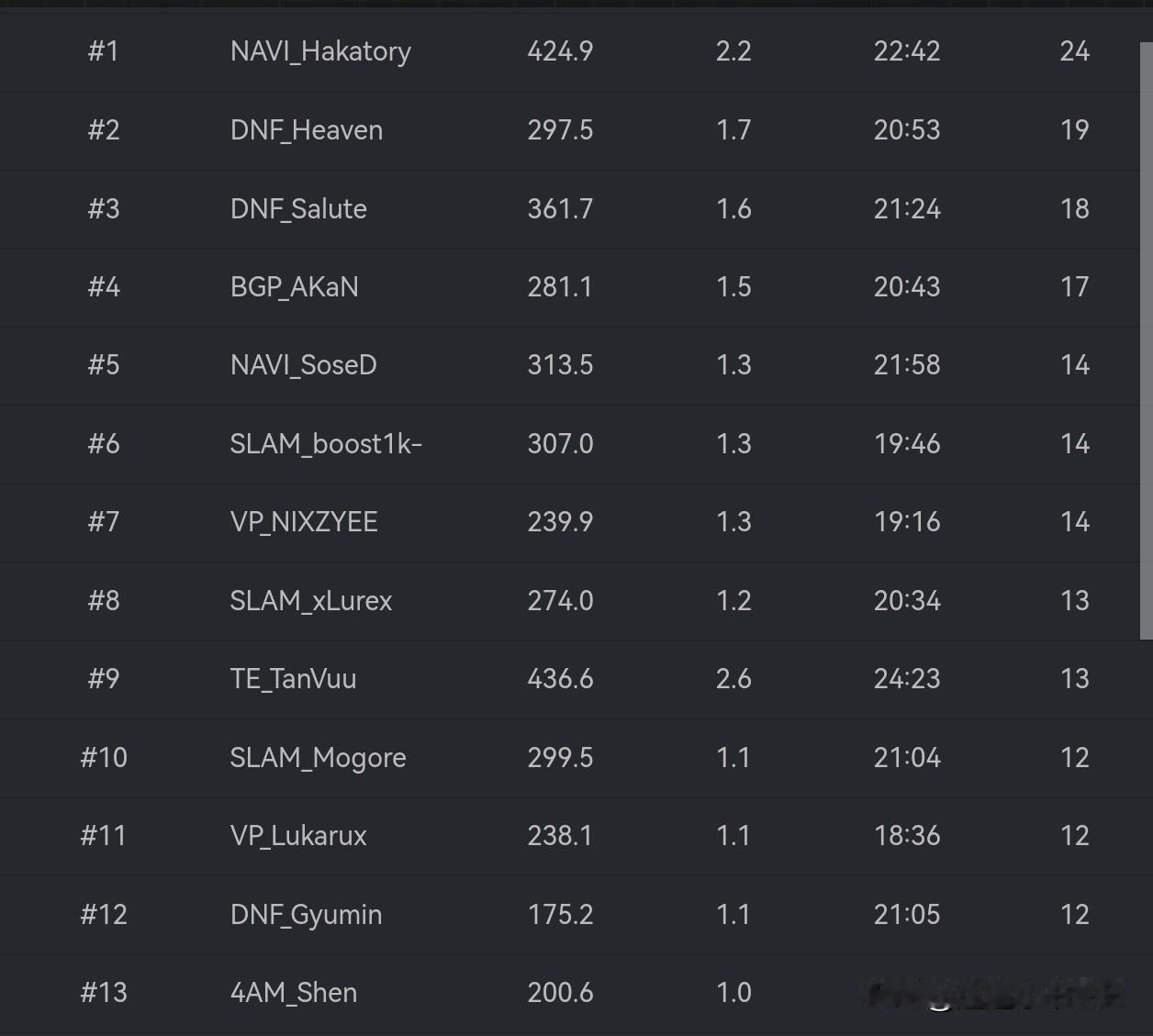 4AM提前回家! PGS10全球系列赛小组赛第二天比赛结束! DNF第一、NAVI第二、SLAM第三、BGP第四 4AM完成了自己的12场小组赛,45分完全不够,这次没有了圈运加持,这就是现在4AM的真实水平,本土作战的shen表现平平,完全没有联赛那会猛猛突了,对了这是世界赛 JDG和17一样,明晚基本上没有什么压力,决赛还是比较稳的,还有的玩 飘柔左神回归感觉没多大提升,和CTG一样,明晚需要抢分