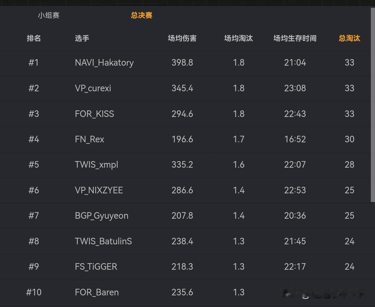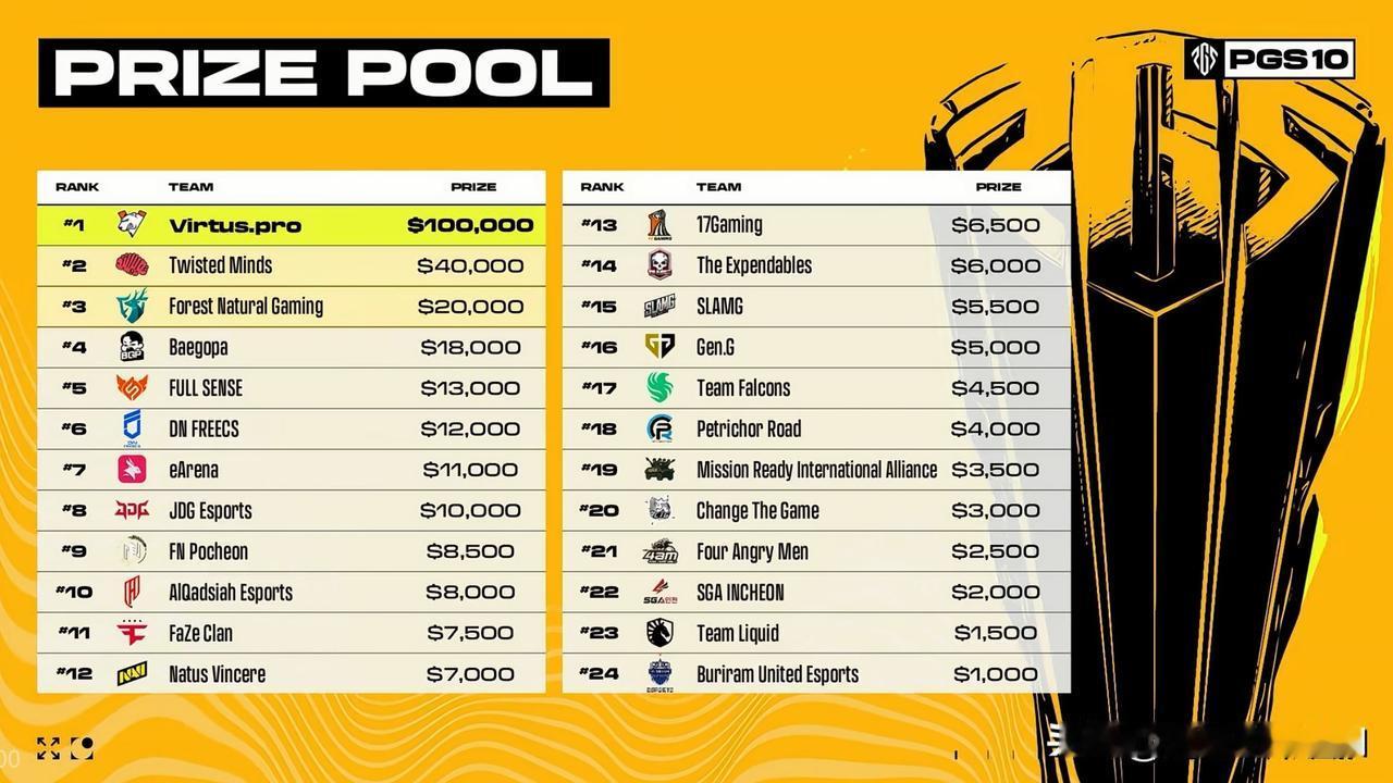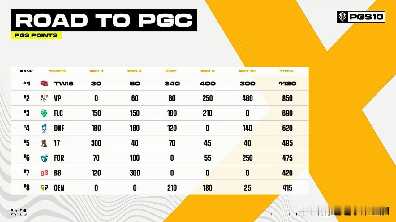 VP夺冠了! PGS10全球系列赛总决赛三天比赛结束! VP冠军、TWIS亚军、FOR季军、BGP第四 PCL赛区JDG获得第八名、17第十三名! 今天对于我们赛区来说或许不是个愉快周末,隔壁TES被T1直接3局带走,PCL这边成绩也是不理想,完全没有达到预期吧! 随着PGS10全球系列赛落下帷幕,今年PGC全球总决赛名单也正式出炉,我们赛区17、PeRo、JDG、GSW、4AM、CTG将参赛,希望他们知耻而后勇,接下来调整好状态,为即将到来的年度大戏PGC做好充足的准备!