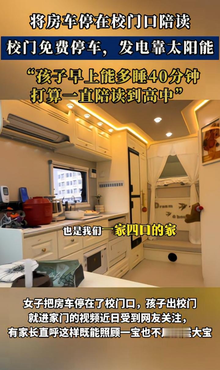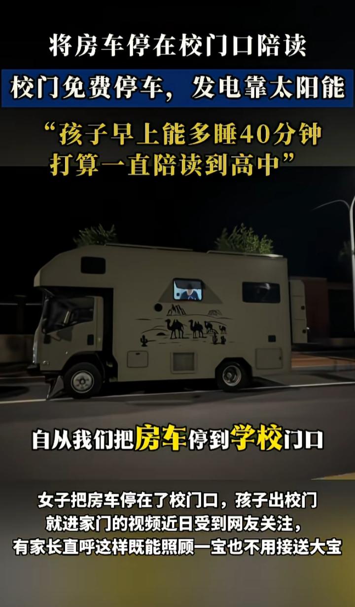 这个刷到几次了,房车直接停在校门口,为了孩子上学方便,这样孩子能多睡40分钟,评