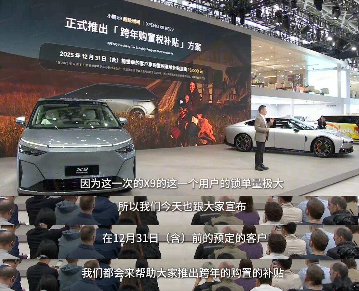 2025年11月21日, 迎来第一百万台整车下线!从50万到100万,小鹏仅用14个月,再次刷新“中国智造”的增长速度。 将这一里程碑定义为“新征程的起点”。面向未来,小鹏汽车将从五大方向持续发力:坚守安全品质底线、升级服务与充电体验、持续推进科技平权、深耕物理AI技术、深化全球化布局,以长期主义构筑企业核心竞争力,致力成为下一个十年全球用户信赖的智能科技品牌。作为百万台下线的“里程碑车型”,小鹏X9超级增程于11月20日正式上市,仅1小时“大定”便打破X9历史全天纪录,其中超过50%的订单来自北方用户,1602 Ultra版本占比高达79%,为“双能驱动”战略打响头炮。为回应用户热情,小鹏X9超级增程特别推出「跨年购置税补贴」政策:2025年12月31日(含)前锁单,即可享购置税退坡补贴,至高1.5万元。小鹏X9超级增程以多项硬核实力树立“增程大7座”新标杆:综合续航达1602km,远行无忧;800V高压平台+5C超充,10分钟补能306km;全球首个零重力座椅专属气囊;支持130km/h AEB+AES主动安全系统;三排电动三折叠,空间灵活高效。 此前透露,2026年小鹏计划推出4款全新「一车双能」车型,覆盖关键细分市场,实现“从零到突破”的快速成长路径,打造更多爆款车型。新起点,新速度。让我们共同期待——小鹏的下一个百万!