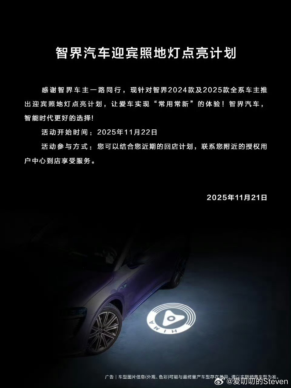 明天起智界车主可以去用户中心预约安装鸿蒙智行地灯。