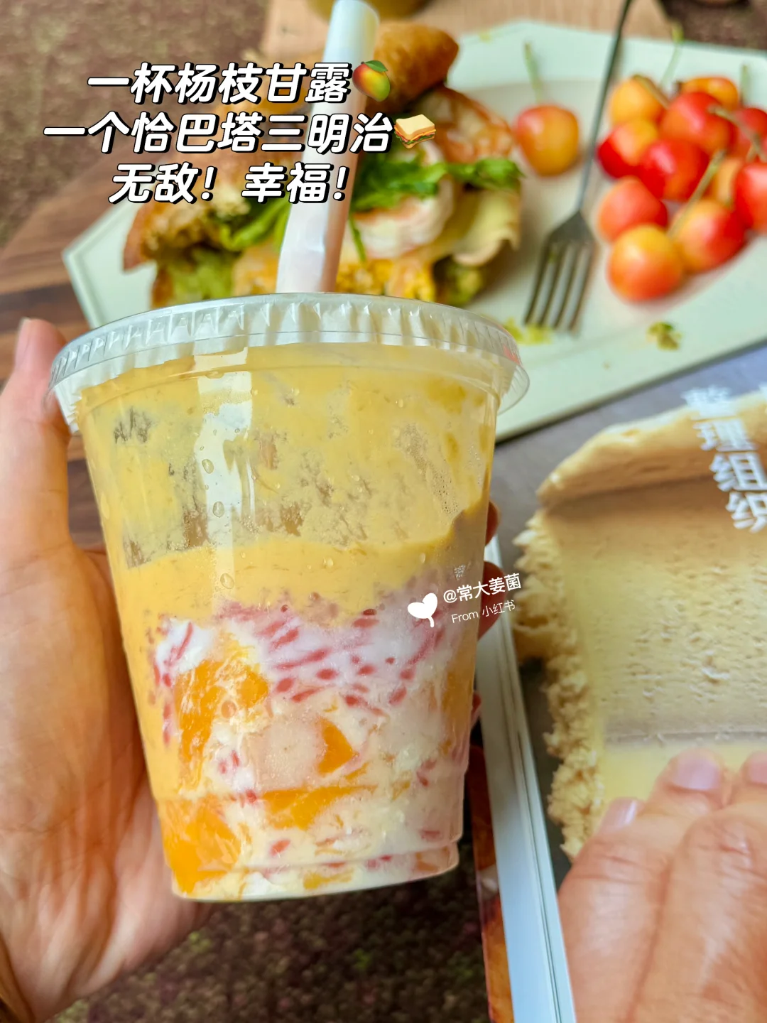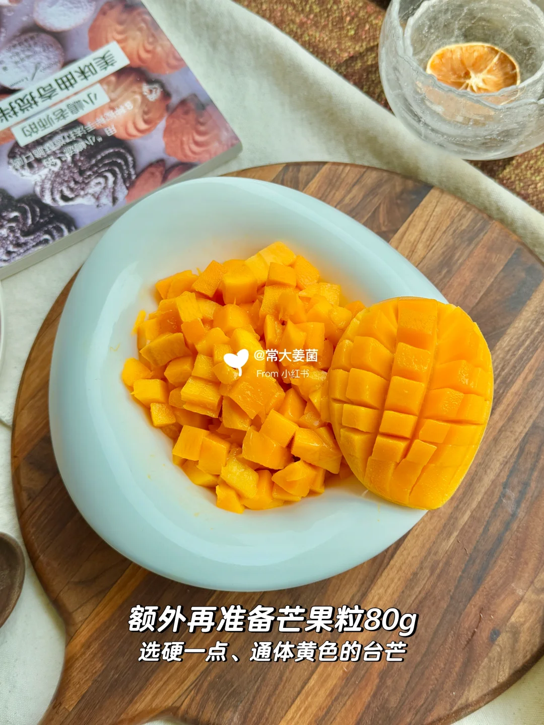 最近在家没胃口,做个不放糖➕料满满的杨枝甘露🥭 嘿嘿嘿,果真,爆炸好喝!!!! 外面妥妥买不到的配料~ ⚠️ ①因为太浓稠,建议喝到一半可以再续满牛奶!🥛依旧好吃 ②芒果用的大号台芒🥭建议不要用软的,用黄色且稍微硬一点的,好切块~