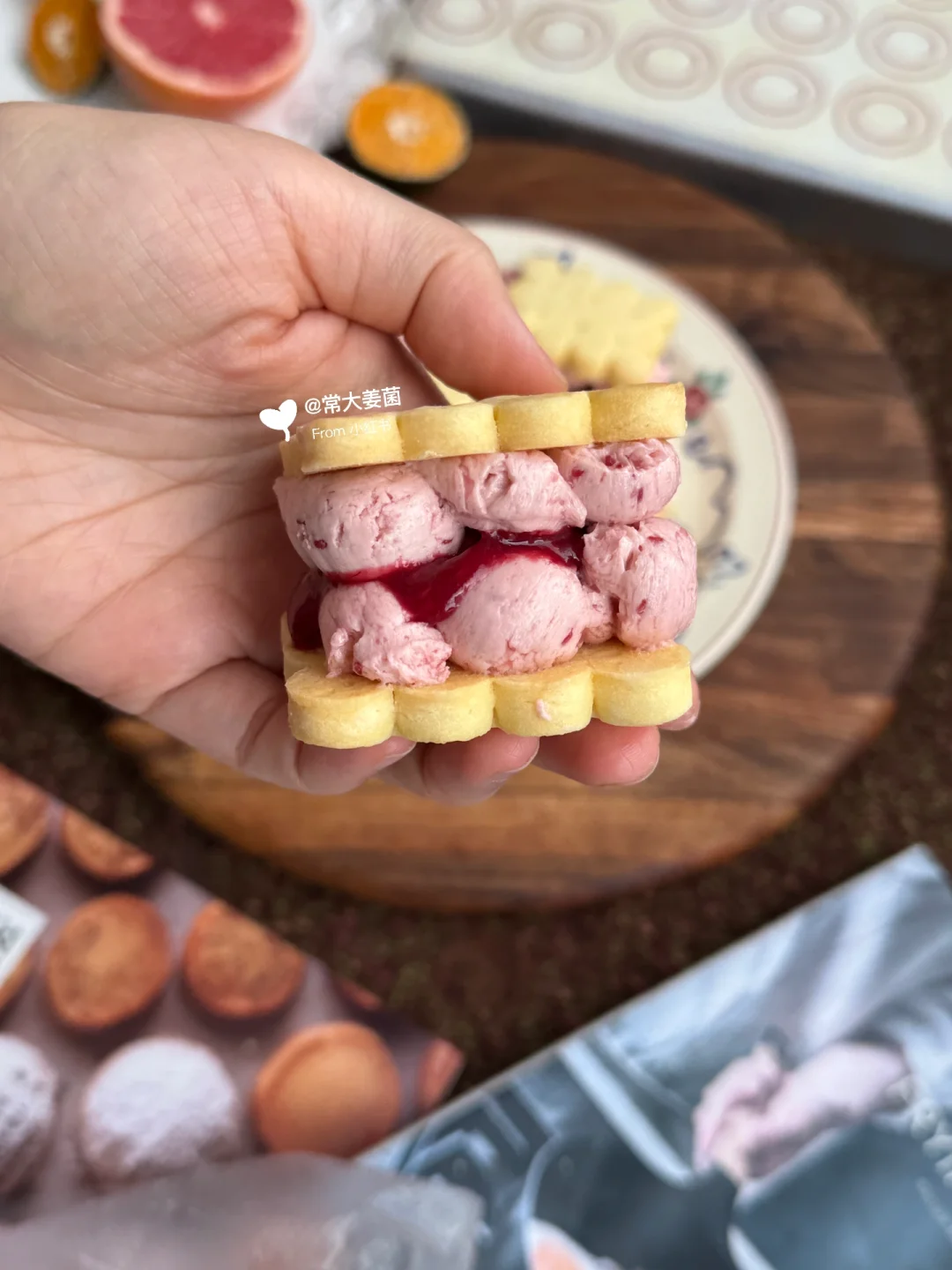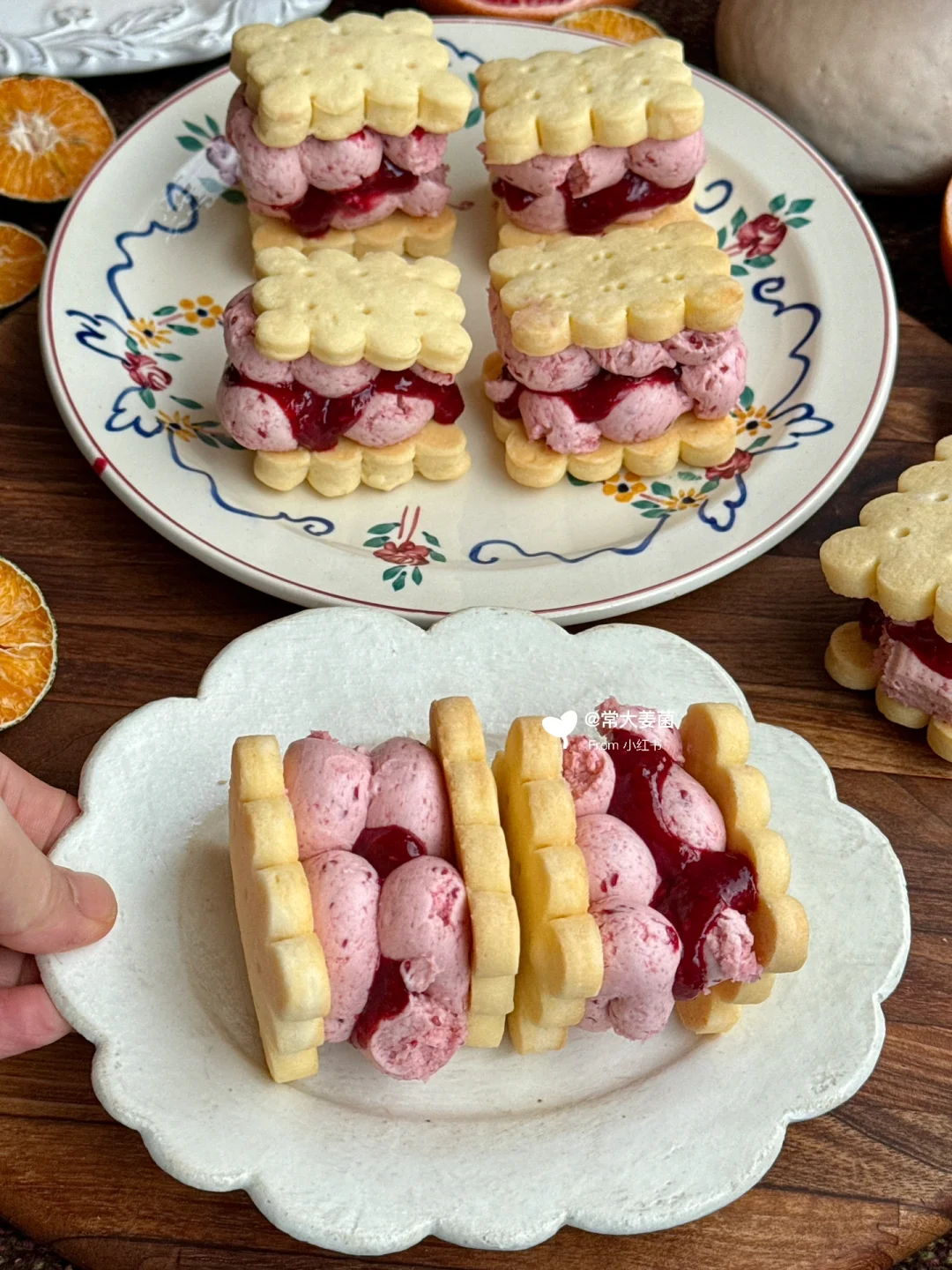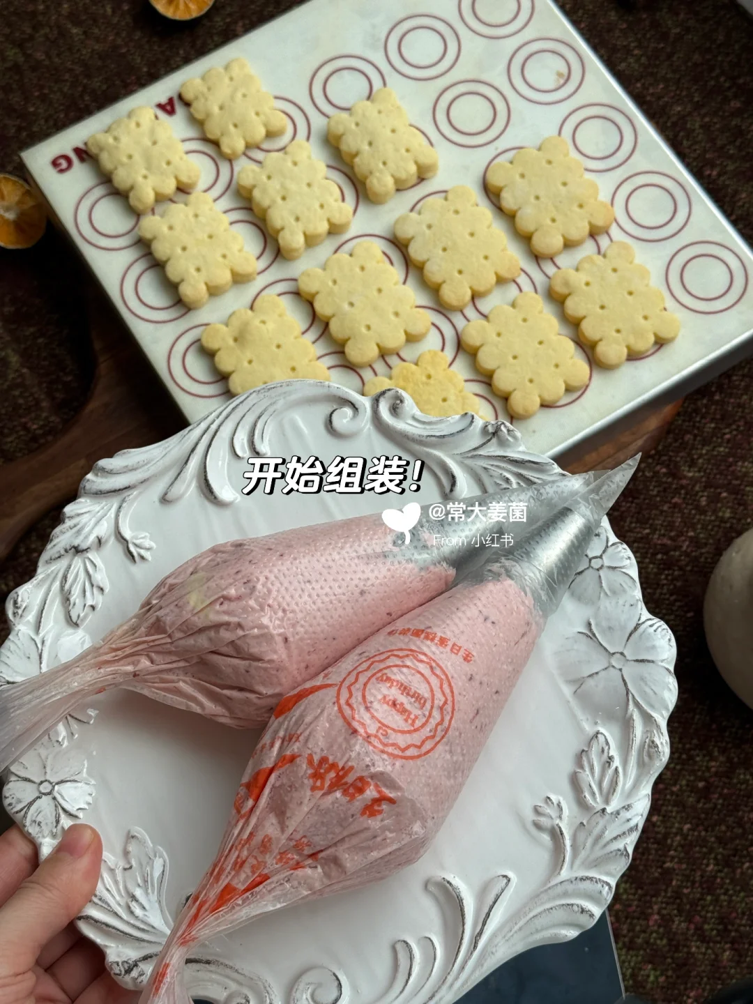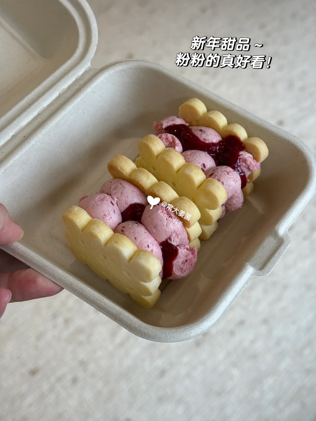 粉嫩粉嫩的颜色真讨喜!节日氛围满当当!🎉 它不仅好看,还好吃!!(不愧是网红曲奇) -白脱奶油比普通的奶油夹心更硬实,奶香更明显! 因为里面加了奶香翻翻的黄油🧈! -再加上树莓酱,一下子中和了黄油的腻感, 啧啧啧~美滋滋!!! 粉粉的过大年,当做小礼物送给朋友亲戚讨喜的哦~🎁 ⚠️ 树莓酱做的甜点会更好吃哦~否则有点点酸