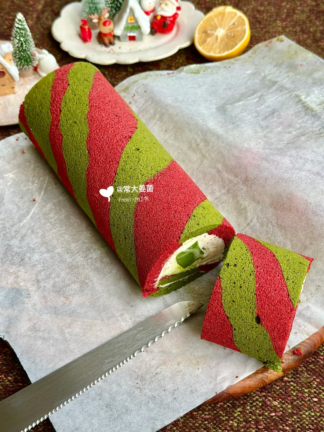 🎄🎅🏻圣诞限定!红丝绒抹茶奶冻蛋糕卷🍓🍵