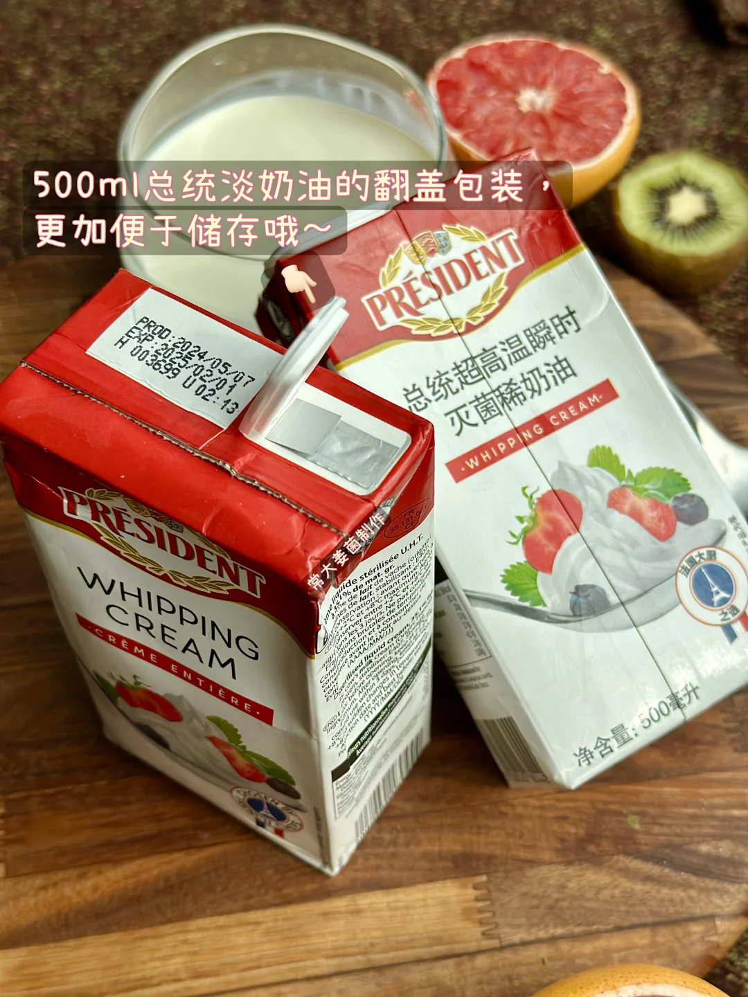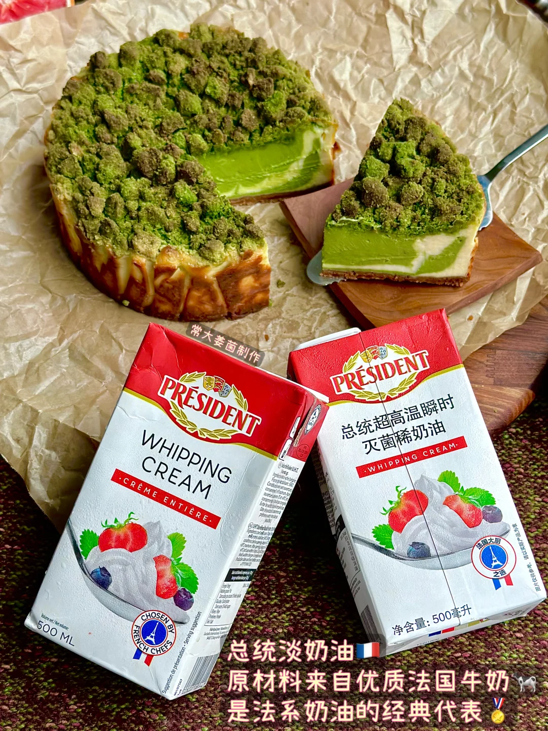 陆陆续续尝试过三个配方,这款是我个人觉得口感最佳, 配方用到双倍五十铃抹茶,和来自优质法国牛奶制成的总统淡奶油, 二者相互衬托,茶苦变得温润醇香~一整个奶绿奶绿,那味,绝!! 总统淡奶油是法系奶油的经典代表,其配方纯净,优选法国奶源制成,并带有浓浓的奶香。而且还很好打发,很适合做各种甜品~ 另外,俺选的是500ml规格的,刚好能满足一个家庭吃的8寸蛋糕,6寸能做两只,一点不会浪费,妥妥家庭烘焙优质奶油~