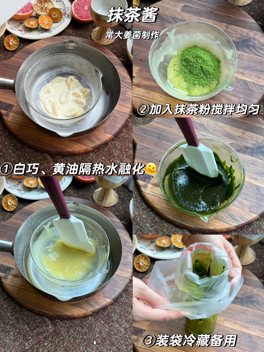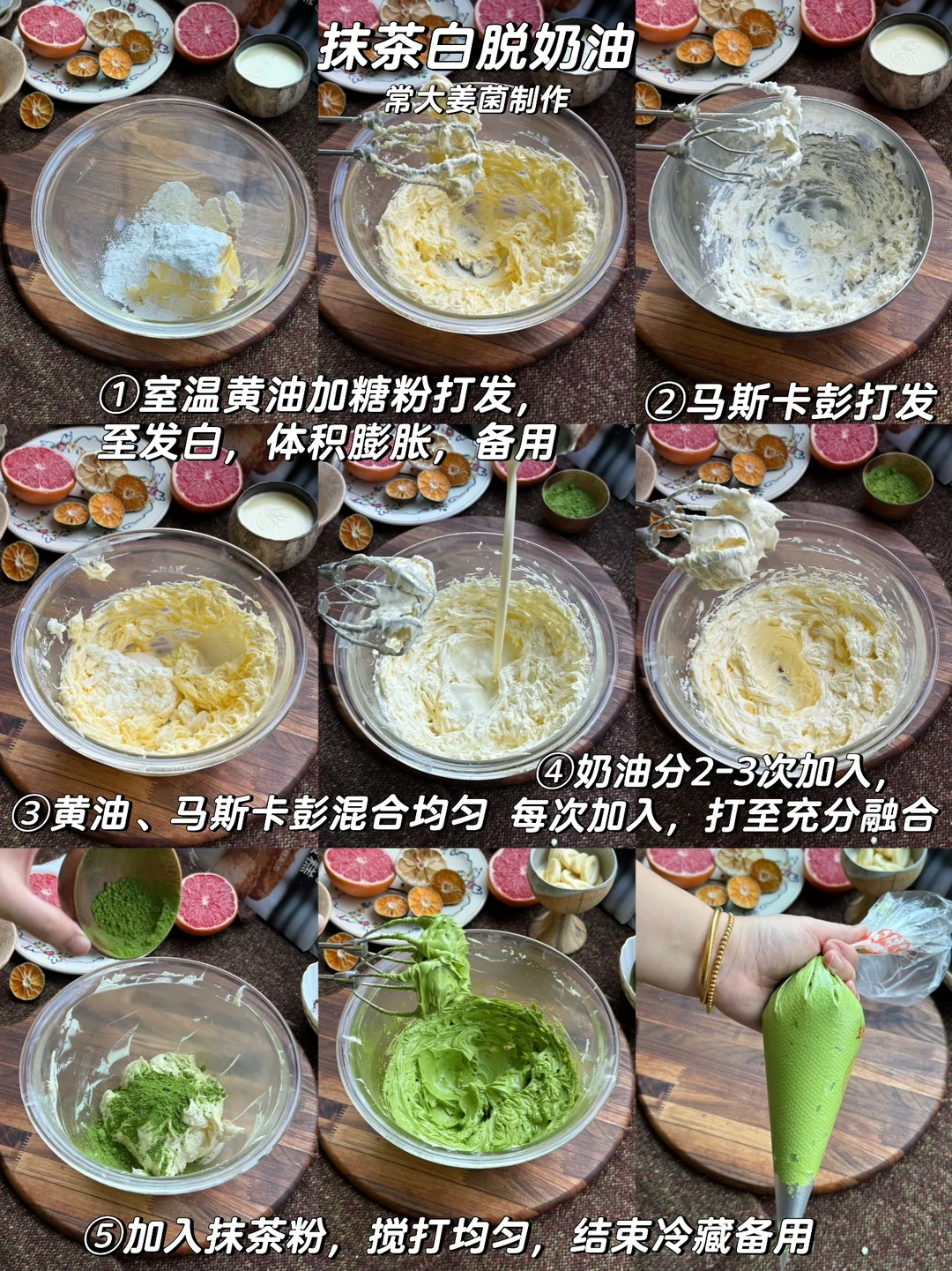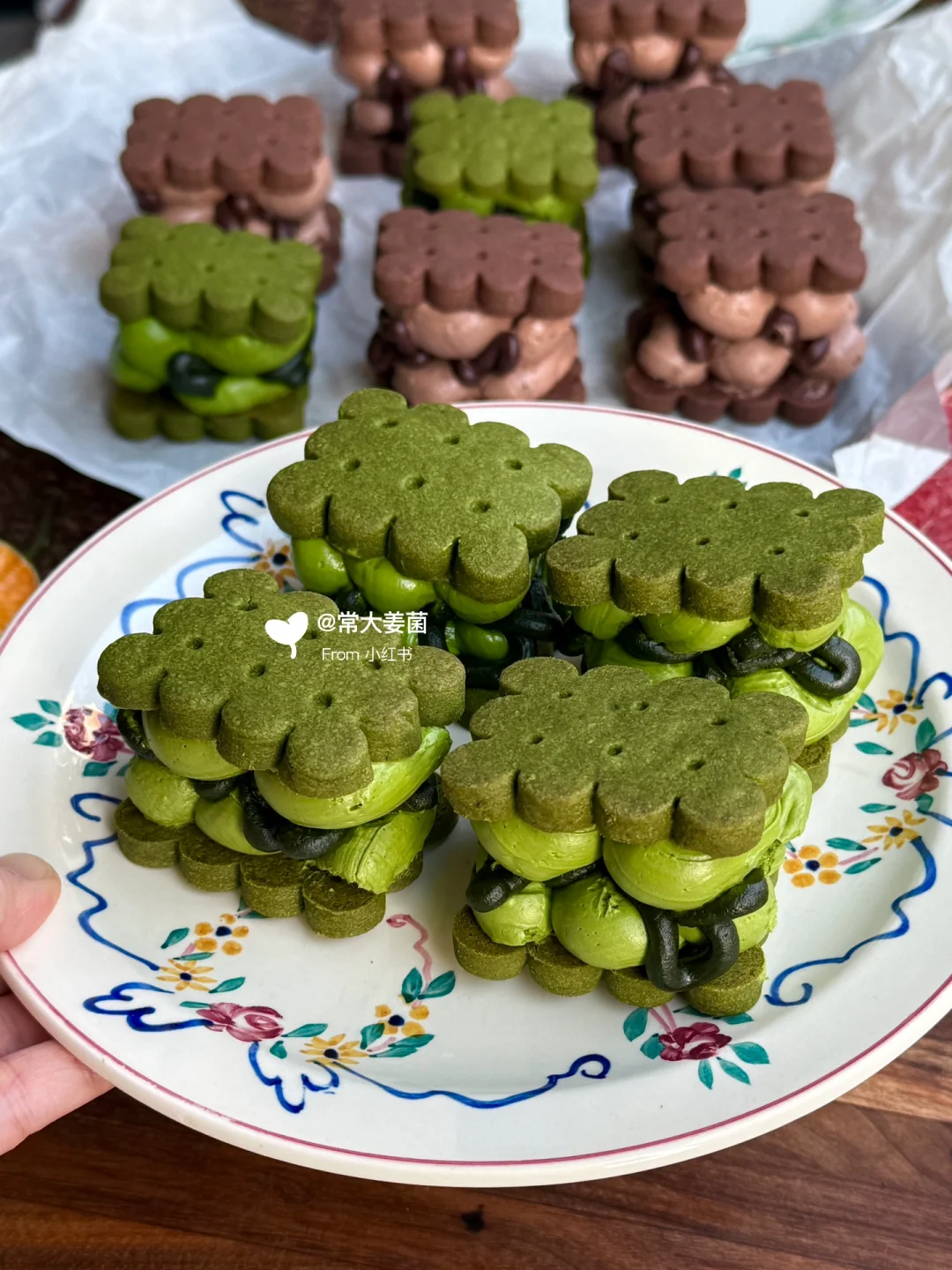 做了🍫巧克力和🍵抹茶俩个口味, 今天先分享抹茶口味👩🏻🍳 包含三重抹茶:抹茶曲奇➕抹茶白脱奶油霜➕抹茶甘纳许 一整个茶香浓郁!!!!(低糖配方,抹茶脑袋大满足!) (我用了从京都买回来的贵抹茶做滴,🩸心在滴血, 但真的好吃到无可替代!!) 👩🏻🍳白脱霜做了简洁版(更方便大家居家制作) 味道口感并没有明显差别哦~