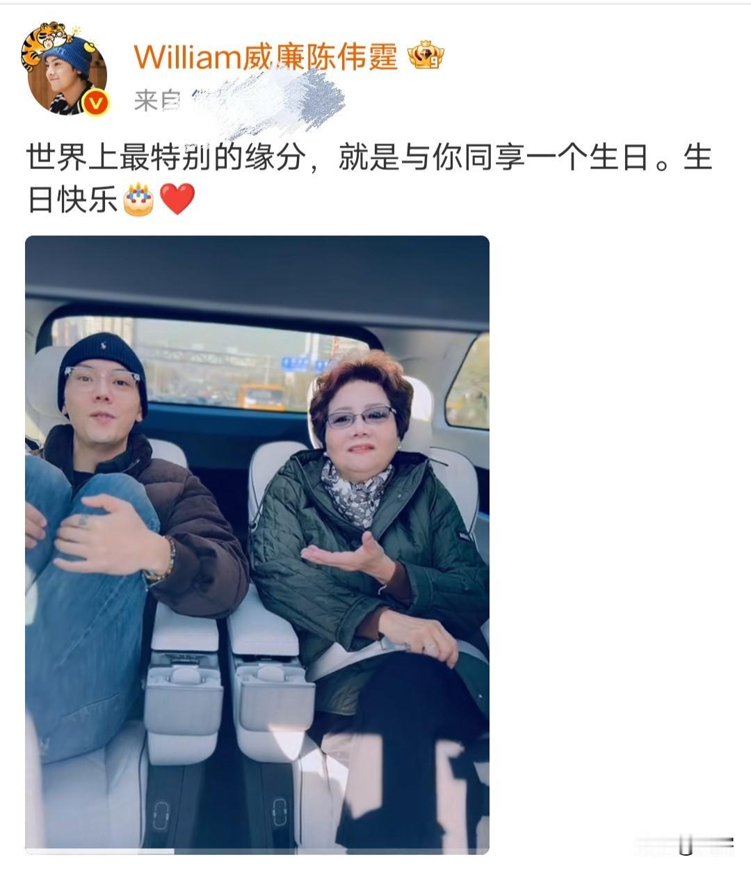 陈伟霆晒40岁生日照!原来他和妈妈同一天生日! 今天,陈伟霆庆祝40岁生日,还分享了与妈妈一起唱歌的温馨画面。原来他和妈妈同一天生日!2018年,他33岁生日当天,就曾晒出与母亲的合照,配文称“找到同月同日生的人是一种幸运,更幸运的是这个人就是我最爱的妈妈”今年,他与赵露思合作《许我耀眼》收获好命哥的头衔,《九门2》杀青,还有了儿子!并官宣与何穗的恋情!他好幸福啊,祝福!