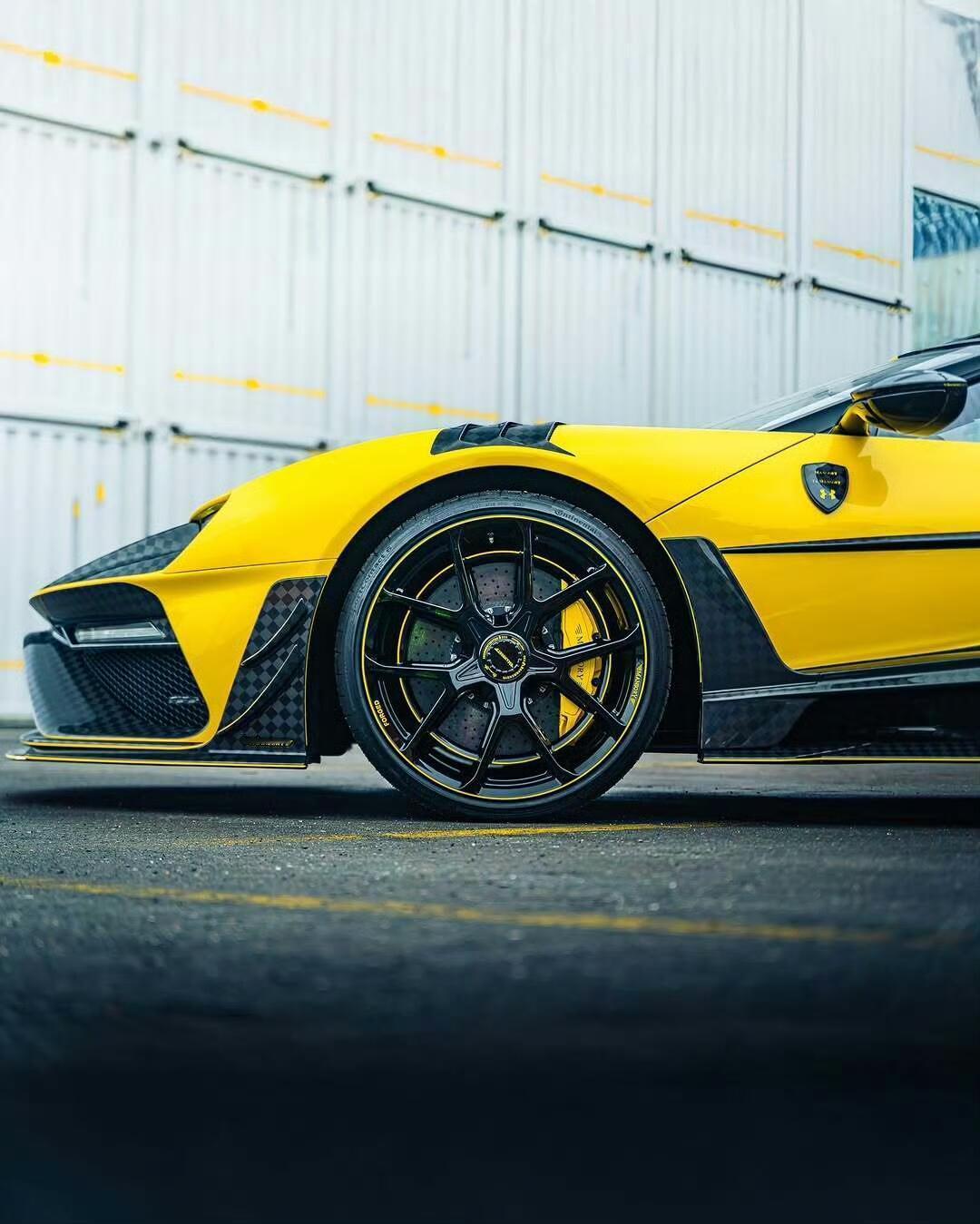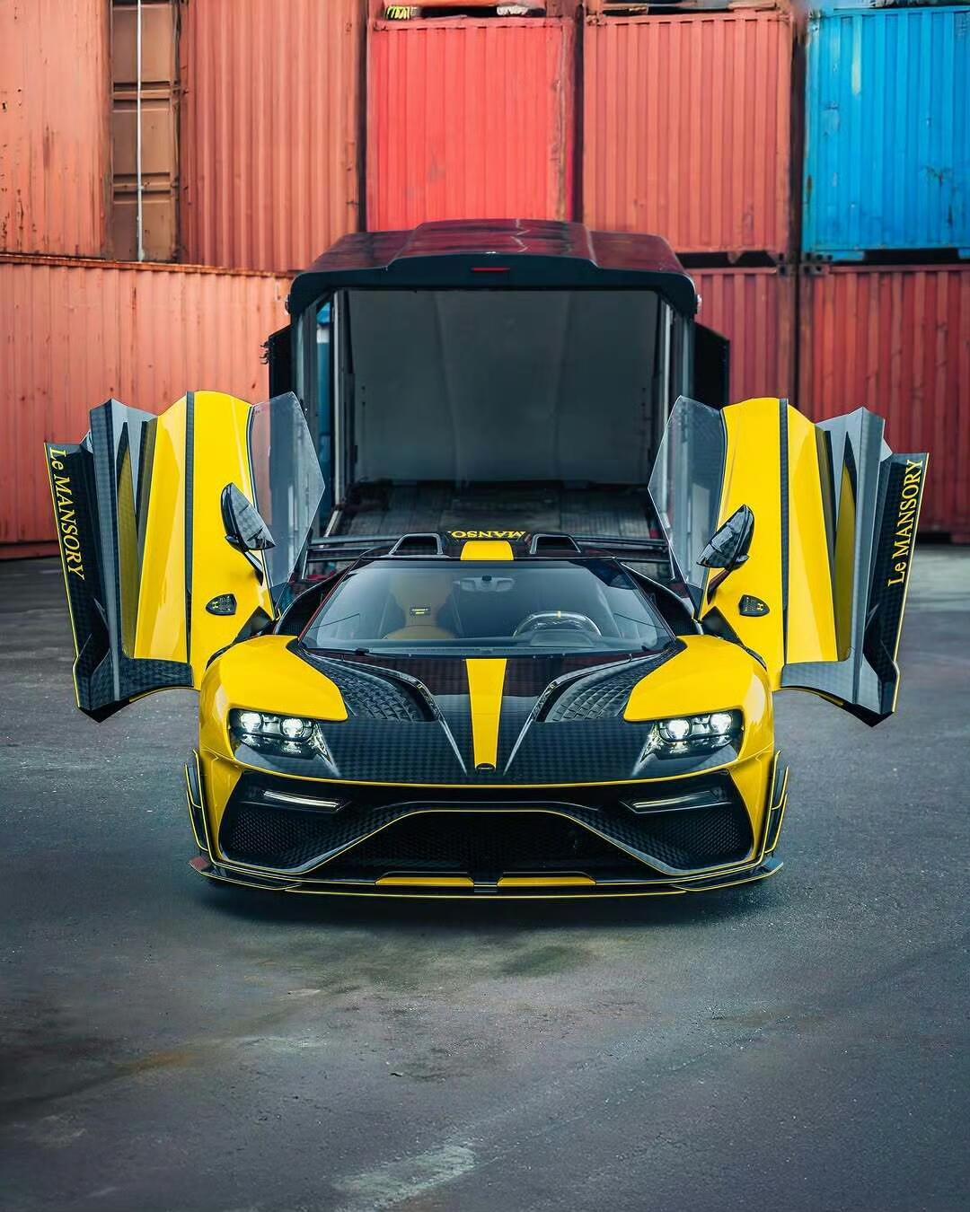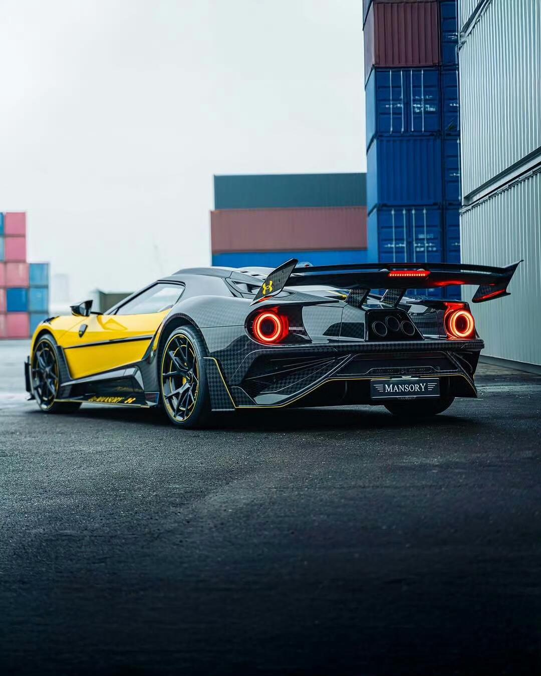 【MANSORY FORD GT—肌肉跑车出击】在汽车的改装领域,有这样一家堪称欧洲定制车界巨头的公司——Mansory。它自称是一家豪华汽车改装公司,自组建以来的30多年间,不断壮大,如今其业务版图已覆盖了包括26个品牌在内的汽车改装领域,无论是主流品牌还是小众品牌,都难逃它的“改装魔力”。2020年,在曼叙30周年之际,一款经过重度改装的福特GT惊艳亮相。这款车的改装堪称极致,全新的车身采用碳纤维材质打造,不仅让整车更具质感和轻量化优势,更在动力上进行了大幅提升,仿佛是为了让车主的热血瞬间沸腾。当时曼叙表示,这样的福特GT限量生产三台,可具体落入谁之手,我们无从得知。而就在最近,就在旧金山NBA全明星赛的聚光灯下,一款与众不同的曼叙Le Mansory再次成为了焦点。首先,它的外观设计灵感来源于篮球巨星斯蒂芬·库里。库里元素在这辆车的车身设计上体现得淋漓尽致,大量鲜艳的黄色与黑色形成强烈对比,彰显着独特的个性。仔细观察,你会发现车身的宽度比常规曼叙Le Mansory宽了近两英寸(约5厘米),而且尽管它可能永远无法驰骋在赛场上,但依旧配备了系列空气动力学改动。除了外观,该车保留了原始曼叙Le Mansory的大部分元素,比如前灯组采用4个独立的灯光,车内大量使用皮革、碳纤维和Alcantara材质,尽显豪华质感。不过,这款车的轮毂却是独一无二的,黑色和黄色的锻造轮毂,每只均为21英寸,彰显着运动与力量的完美结合。在发动机方面,它延续了曼叙对该车的改装思路,将福特V6发动机的功率提升至710马力,扭矩增加到840牛·米,零百加速迅猛强劲,最高速度可达220英里/小时(354公里/小时)。