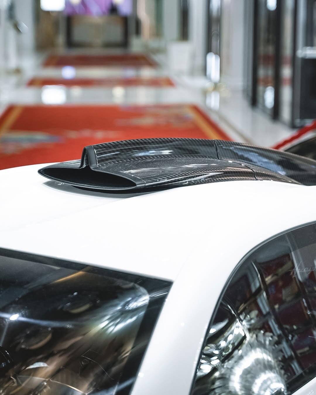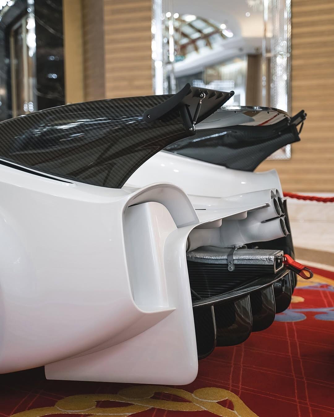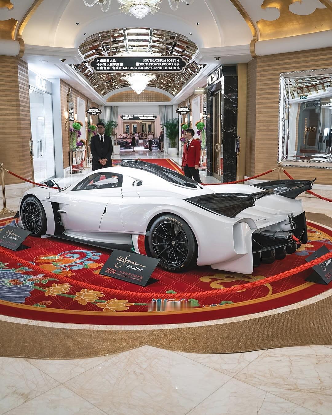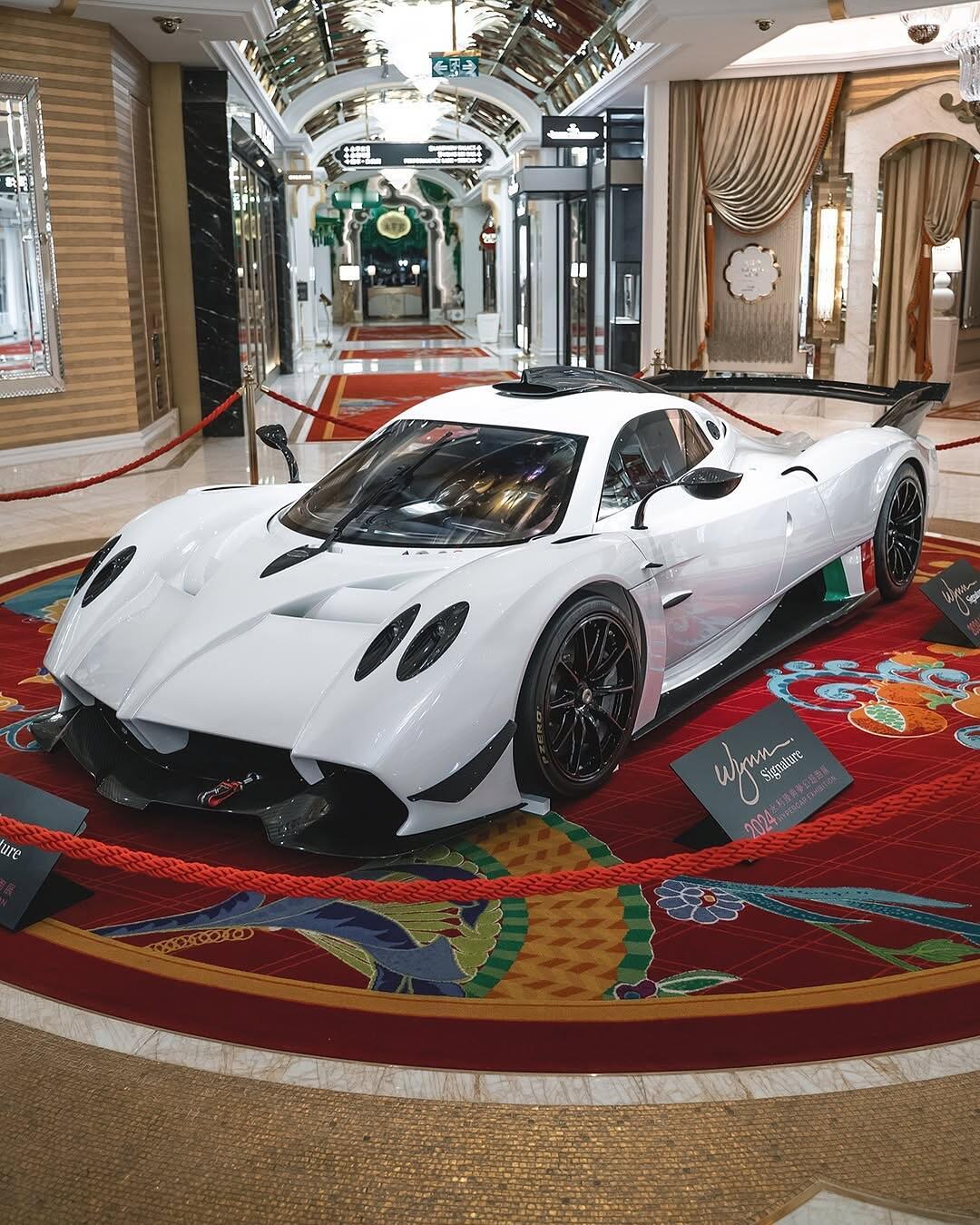 【帕加尼 Huayra R—雪域之王】Bianco Benny "是帕加尼为纪念公司的第一位客户、创始人 Horacio Pagani 的挚友 Benny Caiola 而定制的珠光白色。这种独特色调的灵感来自于 Caiola 雪白的头发,体现了他的优雅气质以及他与品牌之间的深厚感情。Bianco Benny 最初应用在帕加尼 Zonda F 上,后来又应用在包括 Huayra Roadster BC 在内的多款特殊车型上,象征着友谊和独特性的传承。帕加尼 Huayra R 是一款赛道专用超跑,搭载由 HWA AG 研发的 6.0 升 V12 自然吸气发动机,在转速为 8,250 rpm 时输出 850 马力,在转速为 5,500 至 8,300 rpm 时输出 553 磅-英尺的扭矩。这款轻型发动机的红线转速为 9,000 rpm,重量仅为 1,050 千克(2,315 磅),配备带赛车离合器的 6 速序列式变速箱。它的单体式底盘由 Carbo-Titanium HP62 G2 制成,将发动机和变速箱整合在一起,以实现最大的刚性和性能。