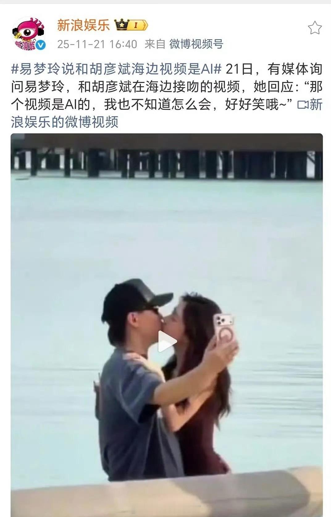 易梦玲说和胡彦斌在海边接吻视频是ai的,大家怎么看?