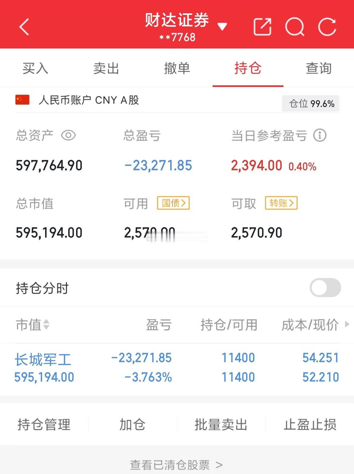 50w实盘挑战一年做到300w(第25天)总资产:597764当日盈亏:+2394持有:长城军工卖出:买入:温馨提醒:以上是韭皇擒妖记录,不作为你的投资依据,股市有风险,投资需谨慎!
