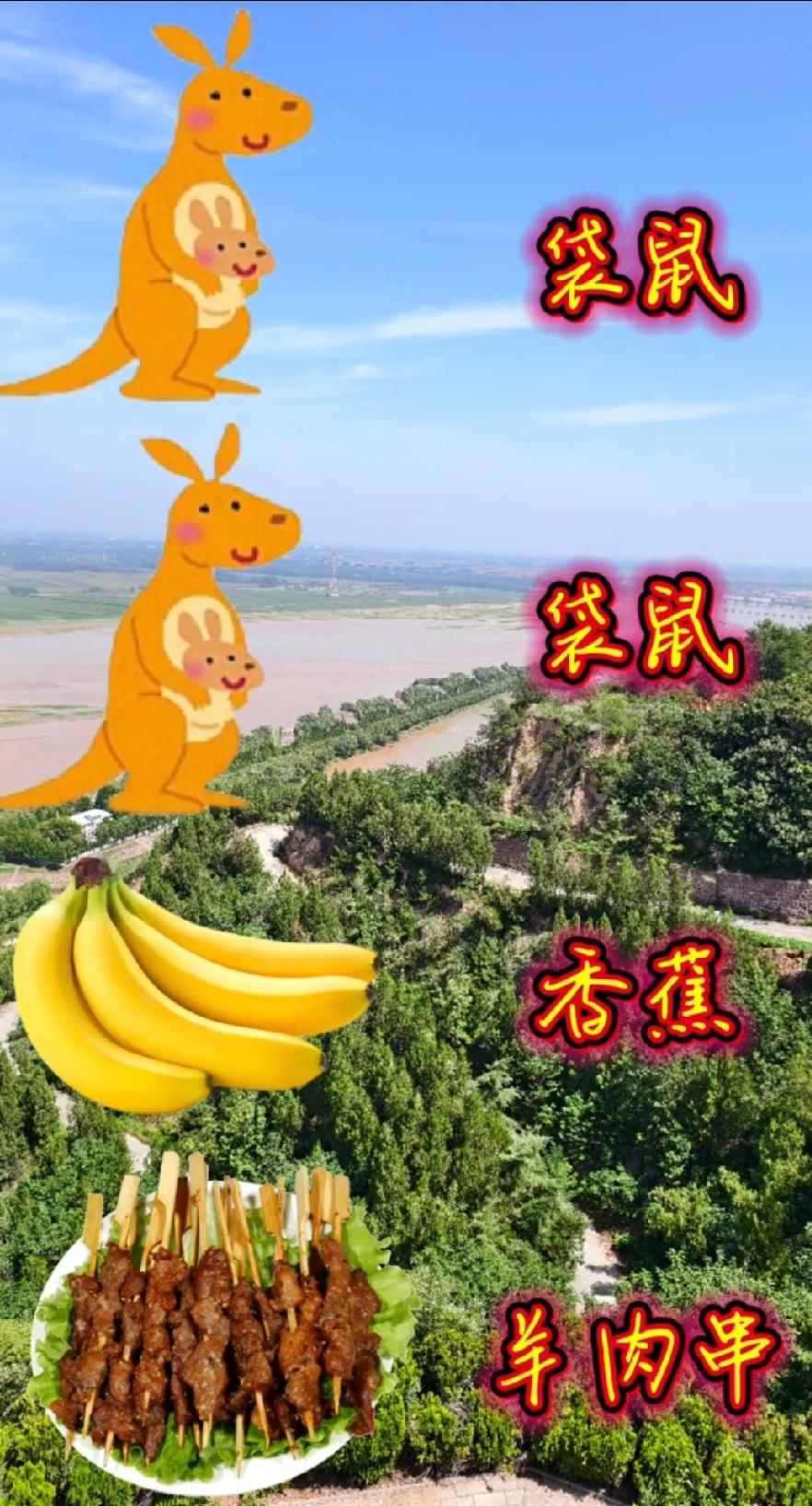 这混搭图的梗太绝了!袋鼠+香蕉+羊肉串,到底藏啥成语?我想破头了!
