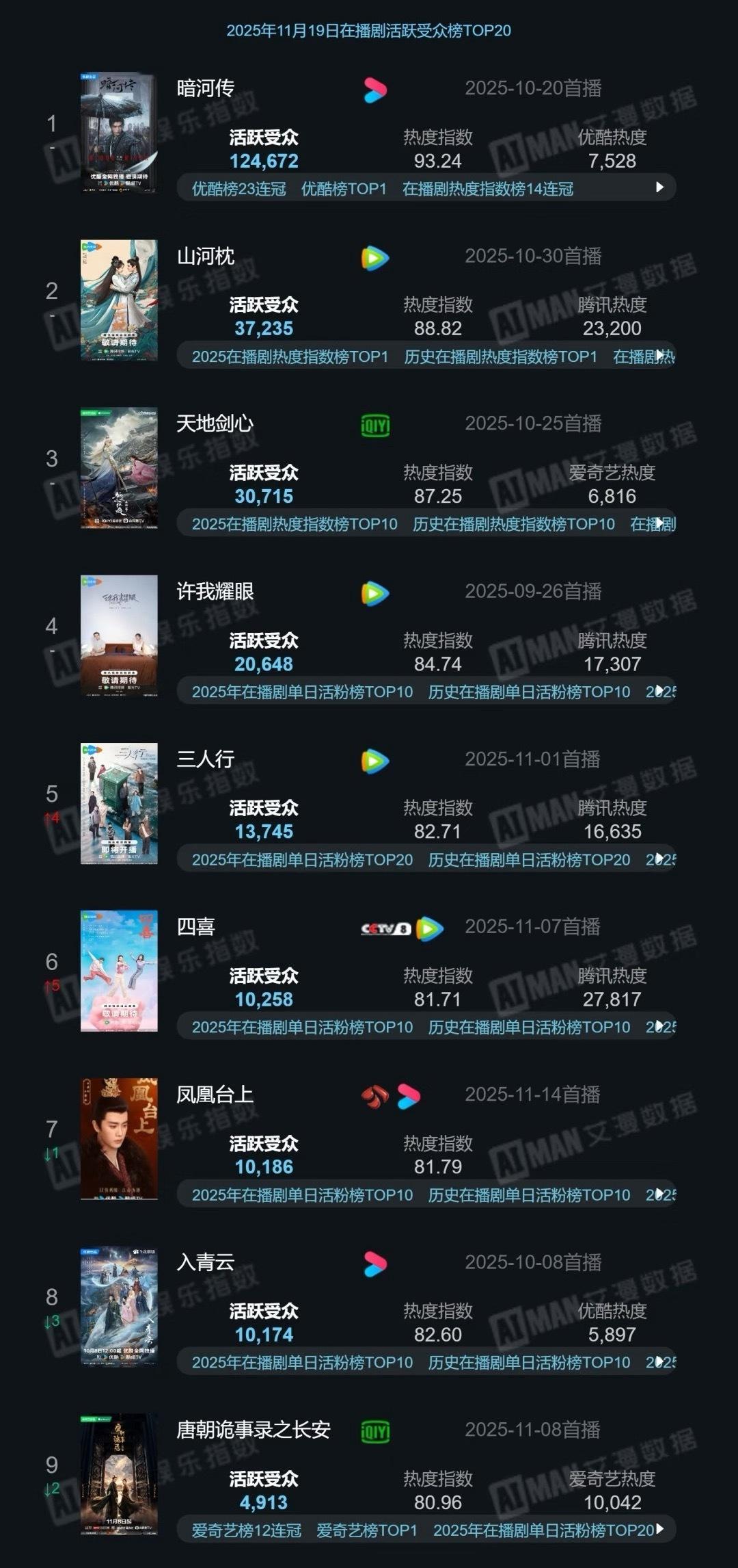 龚俊《暗河传》口碑是真的没话说,虽然已经完结了,但是还在发力中,《暗河传》活跃受众依然3倍鲨其他,就凭这点足以说明,苏暮雨绝对是龚俊最具特色的角色之一。