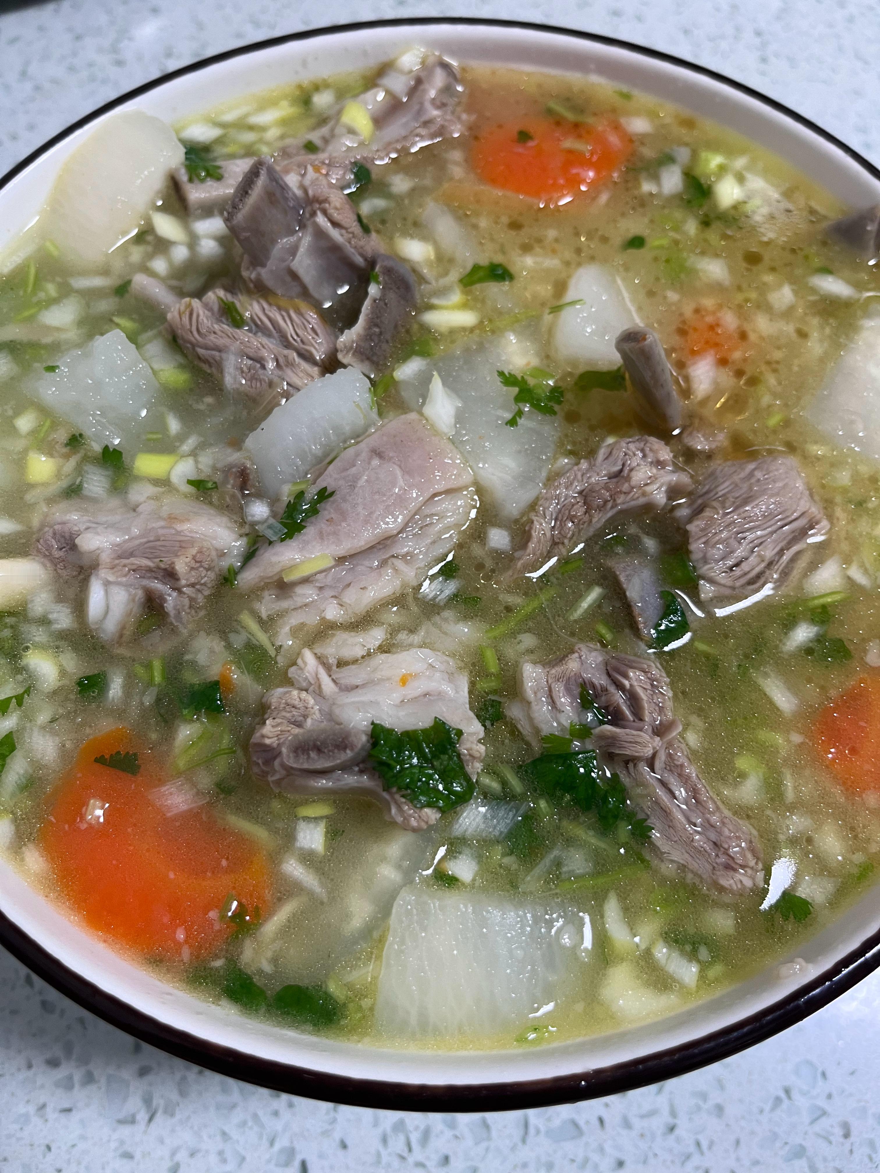 今天属实有点太忙了,忘了秀我的晚餐了🤣羊汤这次太成功了,配上烧饼绝绝子!婆婆还给炖了大猪蹄子送来,今晚又得胖二斤😄