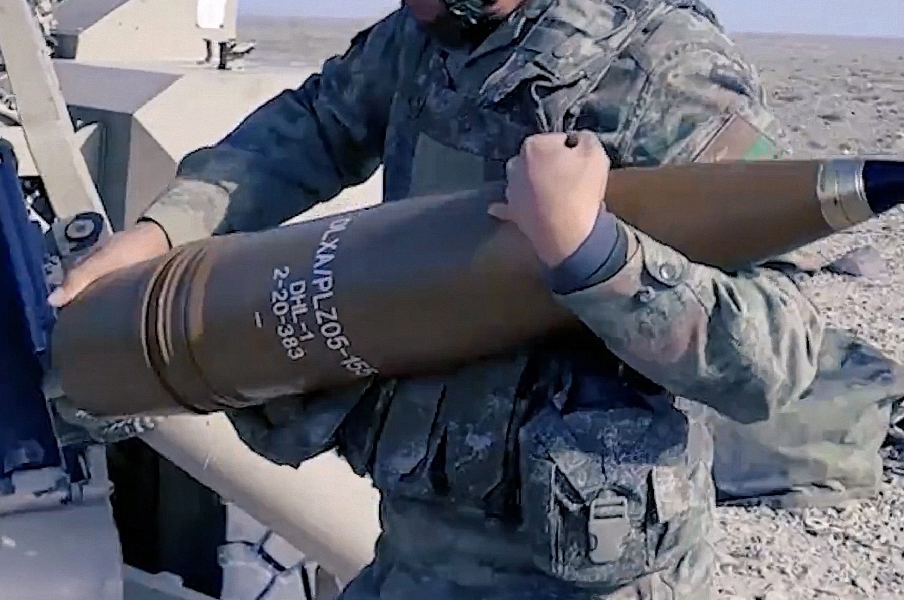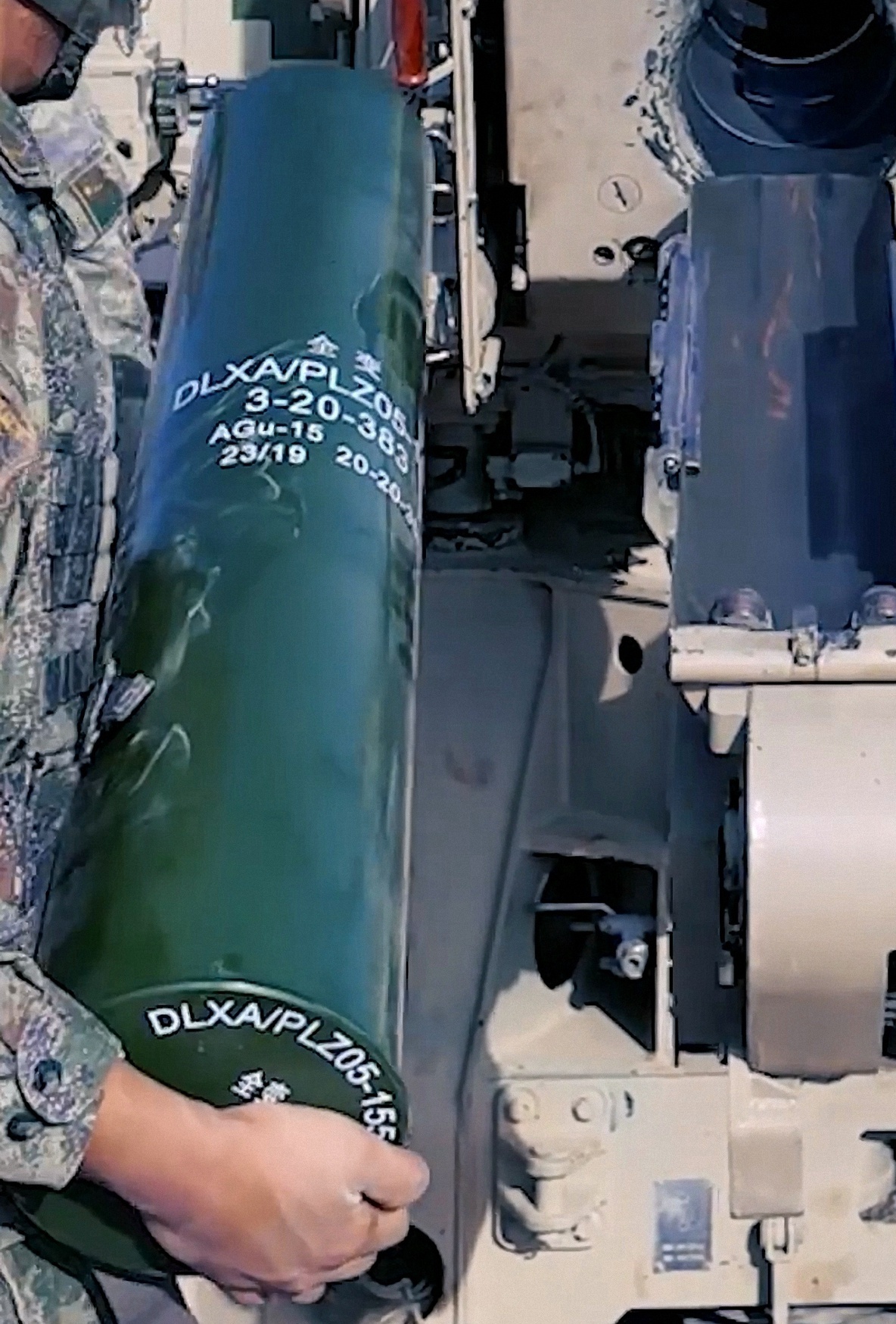箭头处这发2020年生产的155mmDLXA/PLZ05-155弹表面的文字: