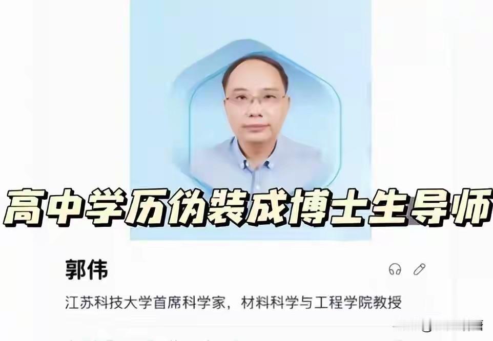 江苏科技大学郭伟被爆学术造假, 根本问题不在于他是高中学历, 而是在于他没有真才实学! 据知情人透露, 他担任着四门专业课的任课老师, 但课堂上从未出现过一个公式! 每每开篇即是宏观叙事, 然后话术一套一套的, 但一点儿专业知识都不传授, 这才是他露马脚的真正原因! 话说他的胆子也真是够大的, 搞了这么大的头衔, 好歹恶补一下专业知识吧! 我最近找的这份工作, 就是专业性极强的科研工作, 刚入职第一天, 领导就让我负责对外交流, 第二天要给我们的大股东汇报。 当天晚上我加班到十一点, 才堪堪把ppt念通顺, 因为专业术语太多了! 至于究竟是什么意思, 又对应什么样的指标, 我根本就来不及学习! 第二天有惊无险地汇报完, 领导私下叫我不要照着念, 要像聊天一样和股东沟通。 我的领导哎, 你知道我心里有多慌吗? 把术语念准确都费了我老鼻子劲了, 不懂装懂的滋味可真不好受[捂脸] 下来后连忙恶补专业知识, ppt也一次比一次讲得好, 无他, 因为心里有底了。 话说回来, 这个郭伟, 真佩服他的厚脸皮, 和无与伦比的自信!