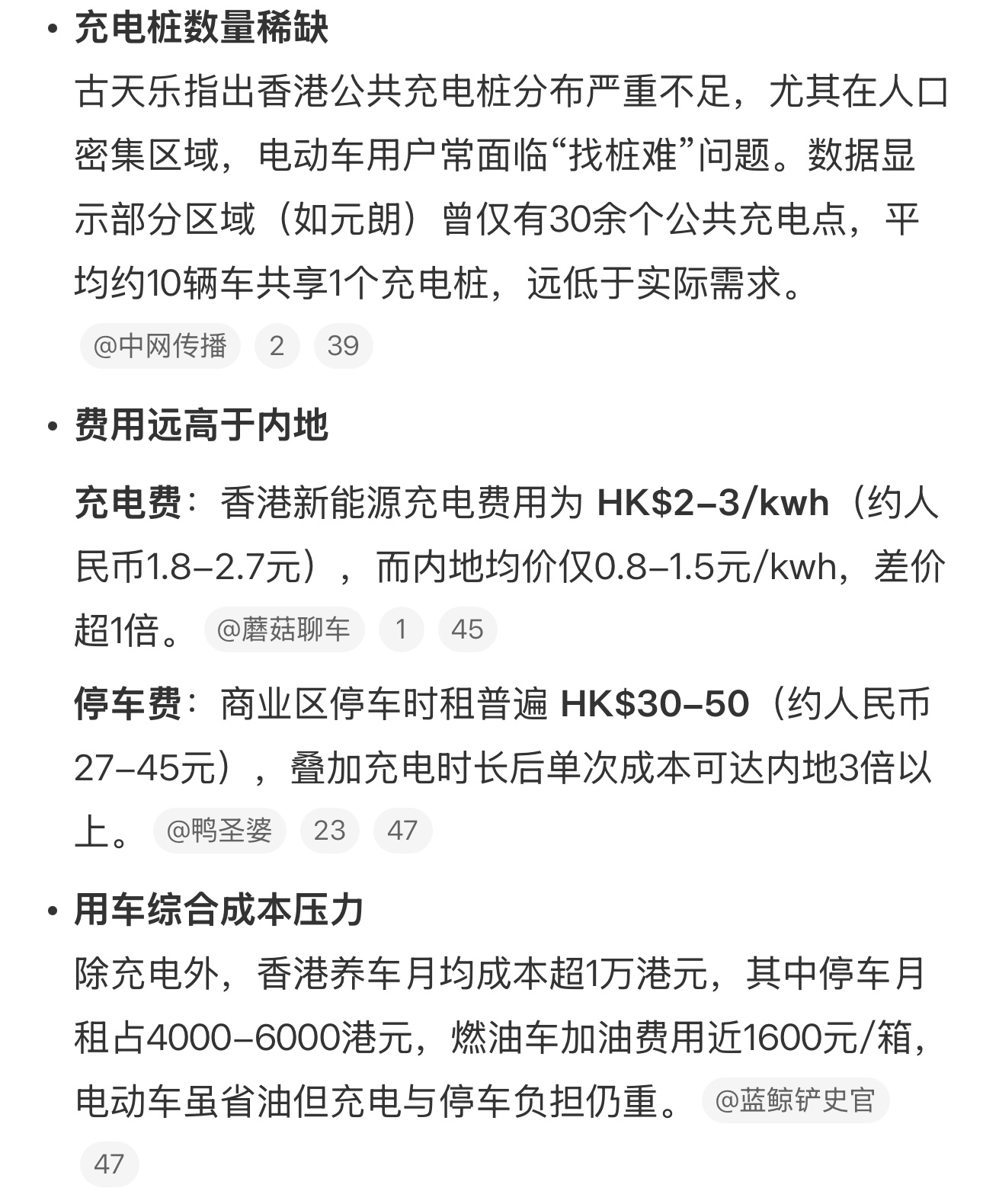 目前内地的新能源充电已经是非常方便了,没想到香港还存在困难。原因一个是和香港寸土