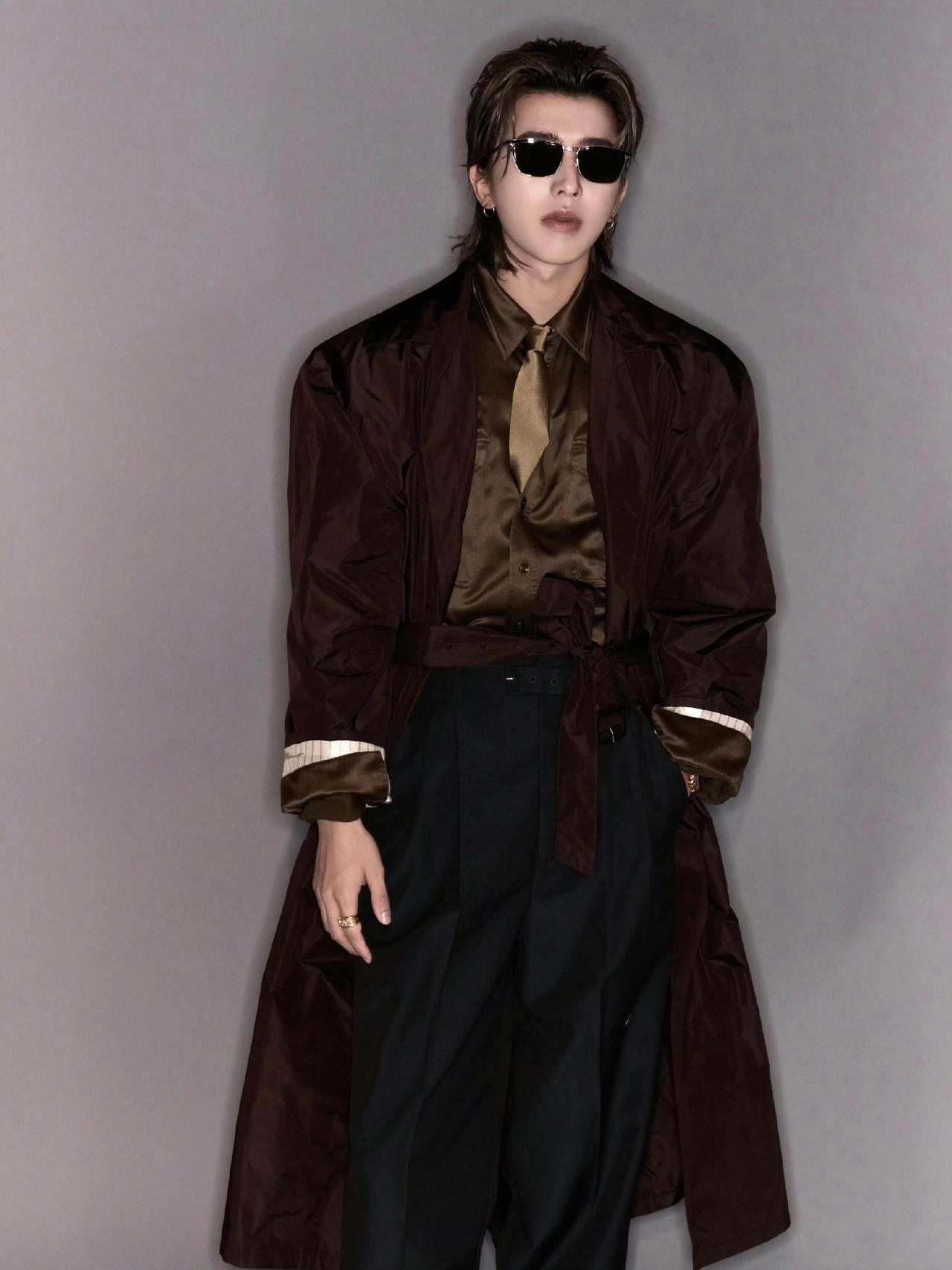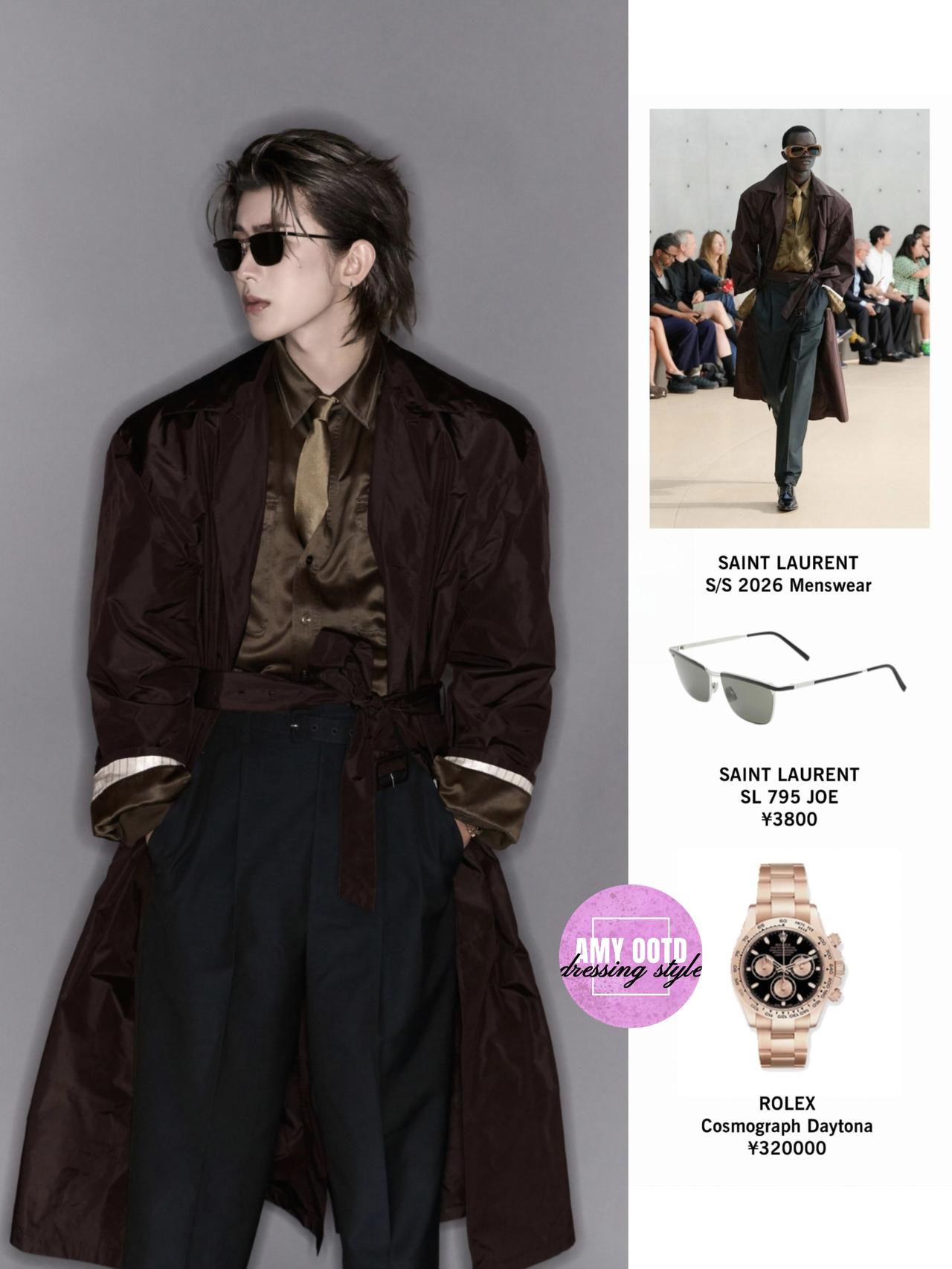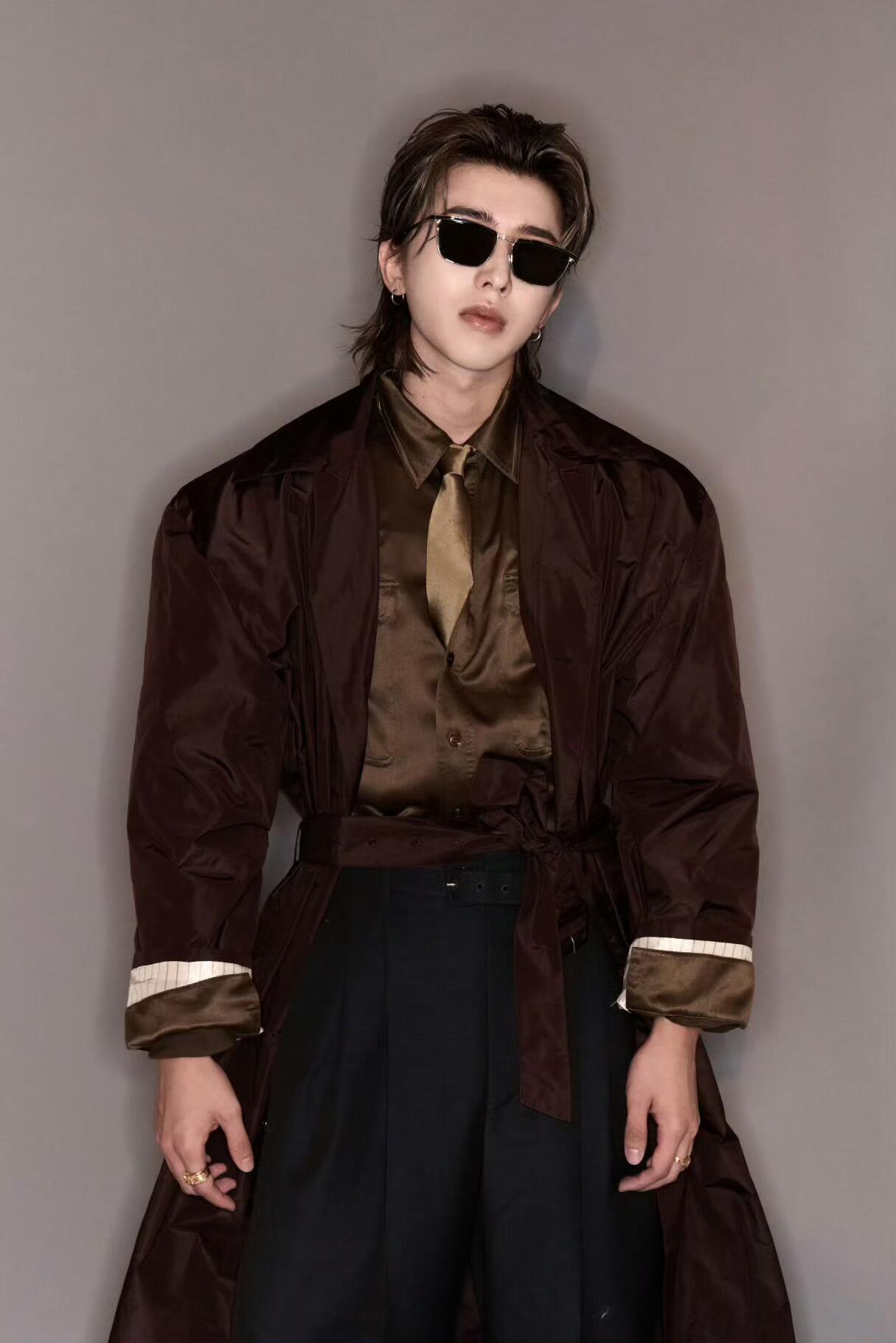 蔡徐坤这身GQ盛典造型太戳“顶奢氛围感”了!深咖色缎面大衣叠搭同系列衬衫,SAINT LAURENT 2026春夏超季款自带高级质感;配罗莱克斯腕表+墨镜,慵懒又贵气,直接把“国际艺人的松弛气场”焊在身上~蔡徐坤