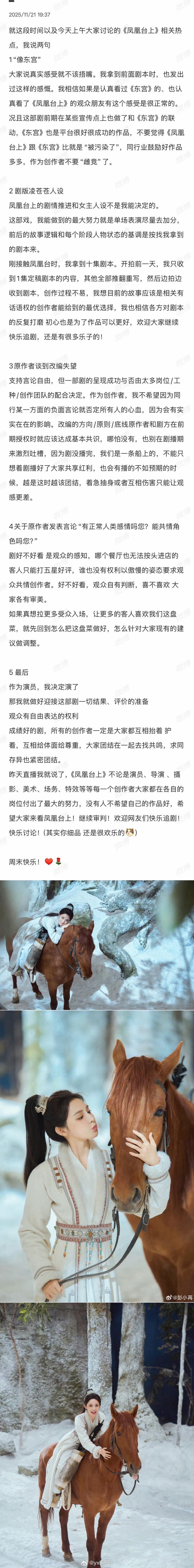 凤凰台上被原著作者出来说魔改,彭小苒居然出来回应了,我只能说姐很勇……但有一说一