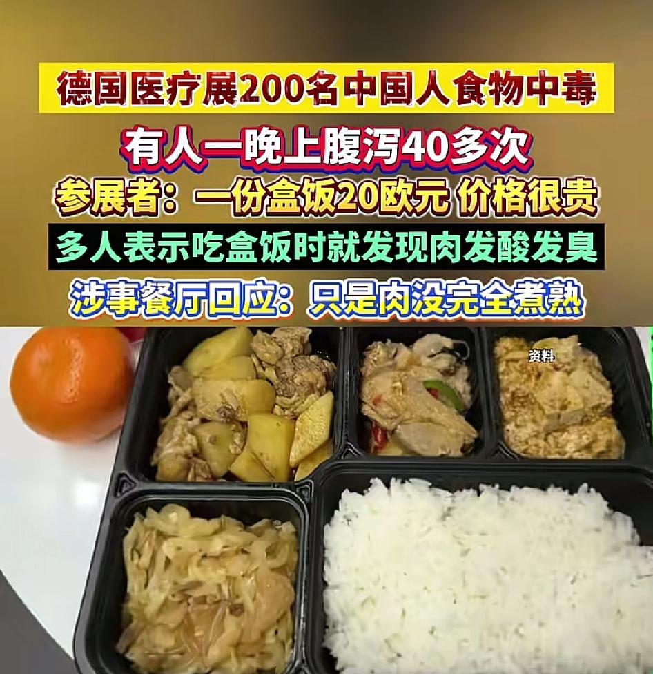百名中方人员,在德国,中餐馆,食物中毒[捂脸][捂脸]这么多人都买这家的餐食,不是销售厉害就是有特殊渠道,出海抱团永远没办法取暖,只能一起倒下这还只是一餐饭。20欧元一份?不知道的以为你们吃的海鲜鲍鱼呢,而且食物中毒的话餐厅要被调查罚款加整顿了吧!营业执照怎么拿的?