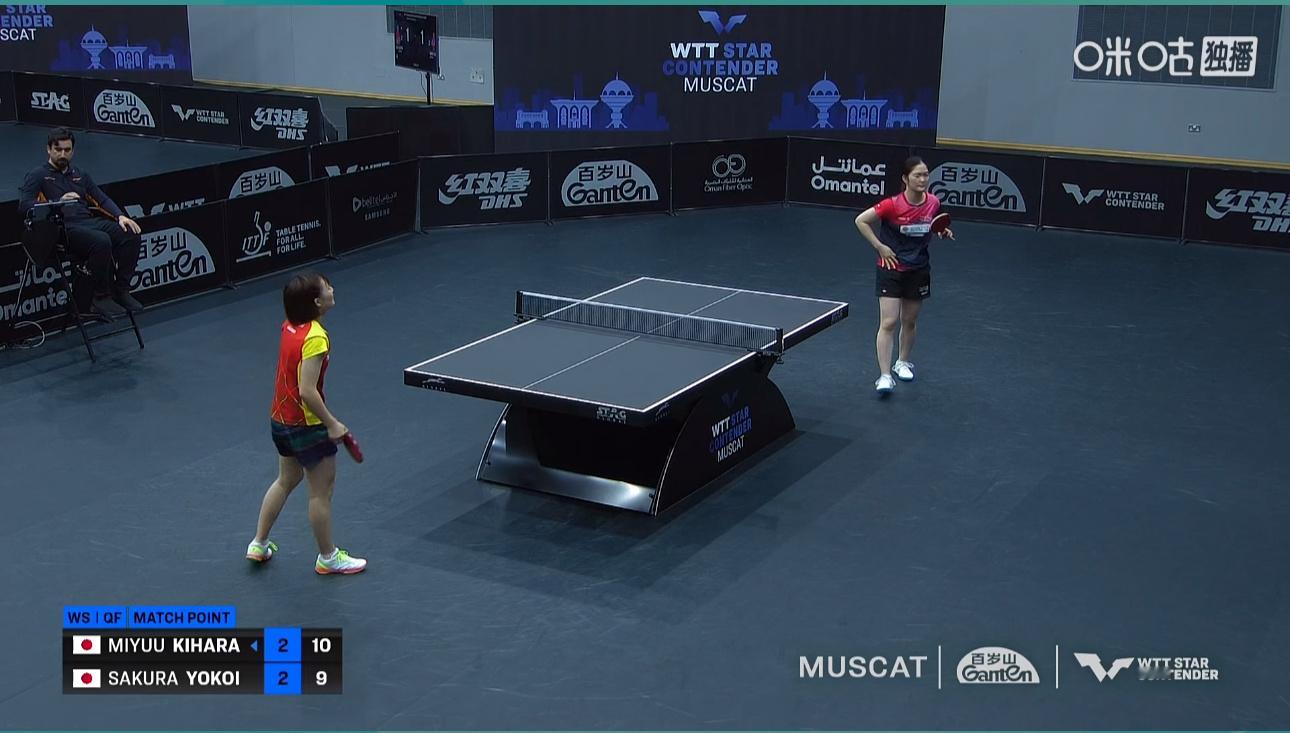 2025wtt马斯喀特球星赛女子单打8-4横井咲樱2-3木原美悠(11-3 11-7 8-11 11-13 9-11)刚才算错了 木原美悠现在有机会晋级总决赛(必须夺冠)