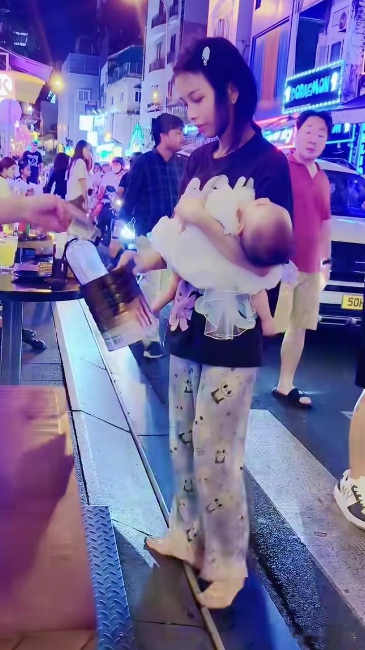 真令人心疼,小姑娘抱着孩子出来卖艺,看模样也就20岁左右,为了给孩子赚奶粉钱,在大街上表演“喷火”,有好心人看着娘俩不容易,给了小姑娘一些钱,也有不少人只是看看热闹,一毛钱也没给,小姑娘也只能尴尬的笑笑。人和人的命运真的不一样啊!有的孩子含着金汤匙出生,而有的孩子一出生连吃口饱饭都难![打脸]