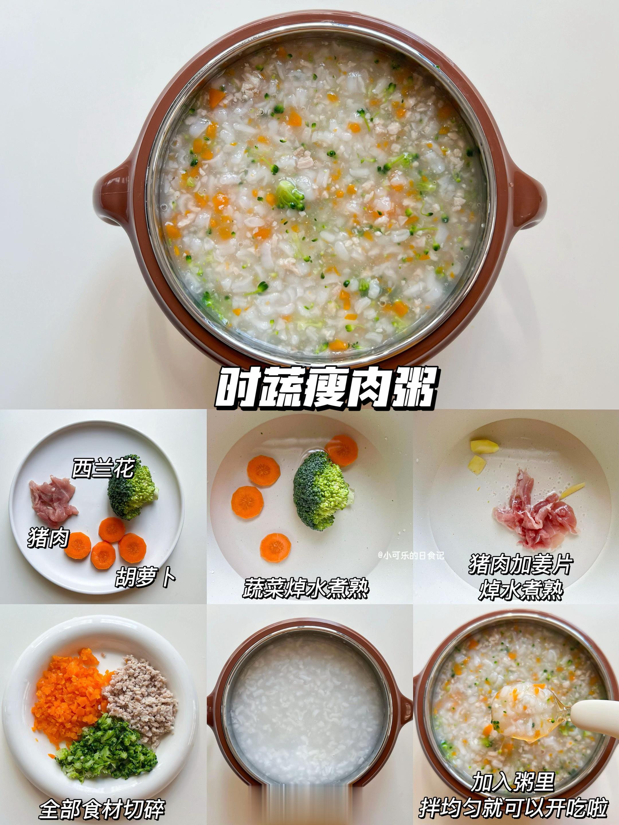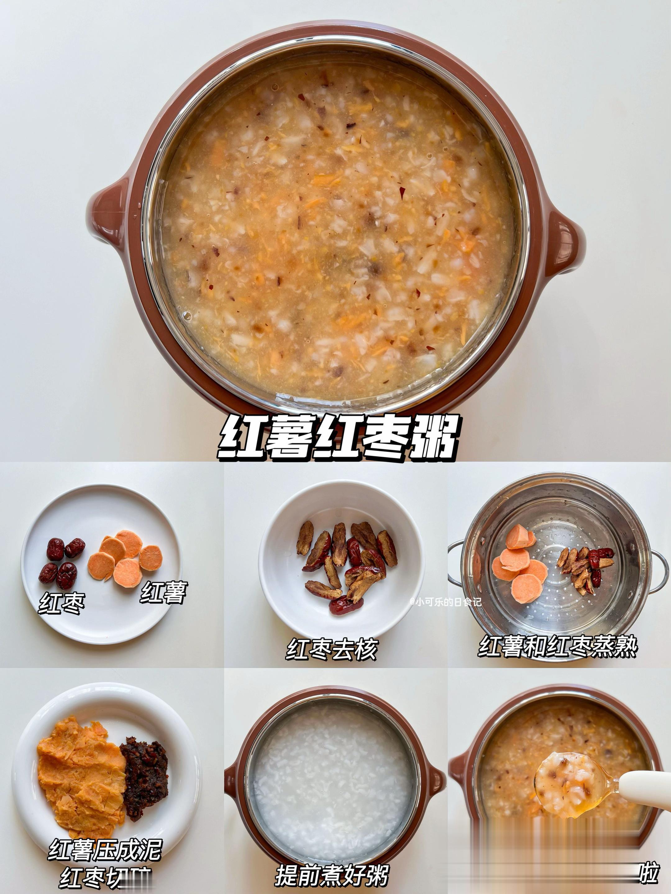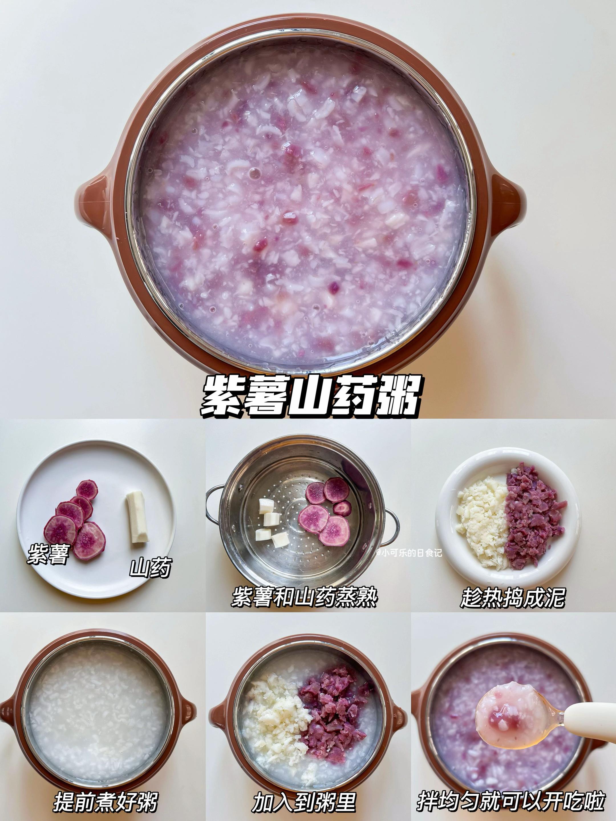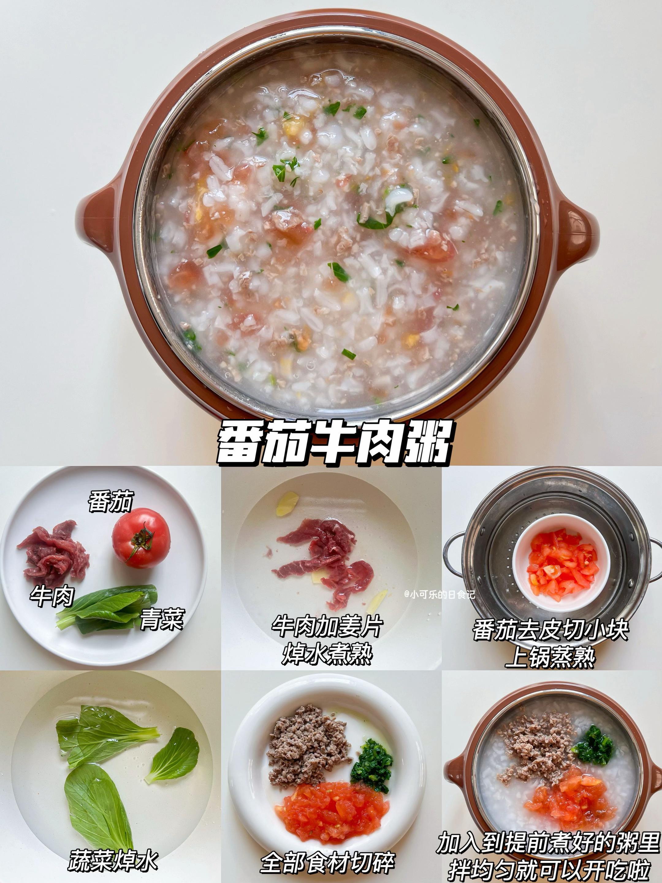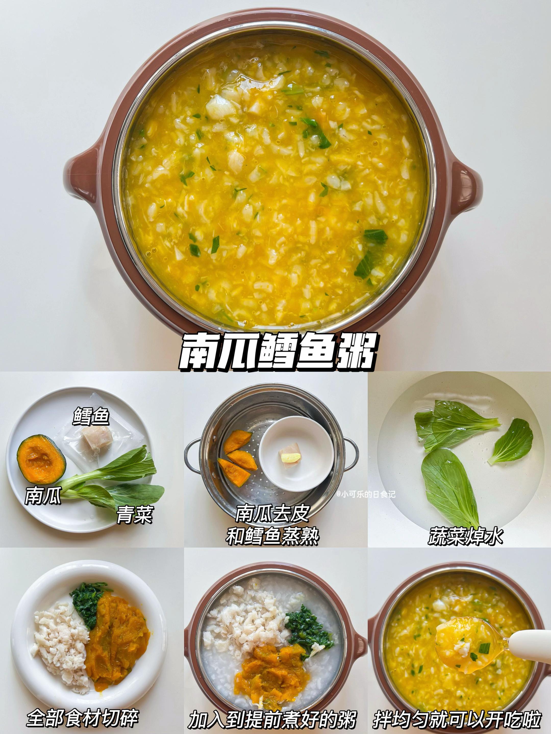 8m+宝宝辅食|营养暖胃粥 软糯好消化。宝宝7个月以上就可以添加粥啦,粥的做法有很多,不能光喝白粥。分享一下平时给宝宝煮粥的做法,我经常是先提前煮好粥,再加肉肉和菜,简单快手又方便。如果出门玩,到家也不用手忙脚乱 🍂这几款粥都很合适宝宝吃,健脾养胃,营养丰富又好吃,快给宝宝安排吧 - 紫薯山药粥 🥦时蔬瘦肉粥 🎃南瓜鳕鱼粥 红薯红枣粥 🥬菠菜蛋黄粥 🍅番茄牛肉粥 🔎详细做法请看图片 ✅食材大小和食材量可根据宝宝咀嚼能力调整
