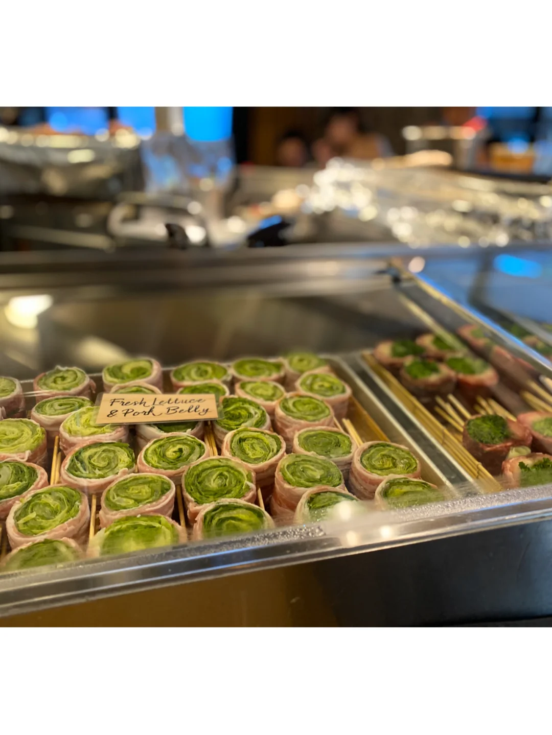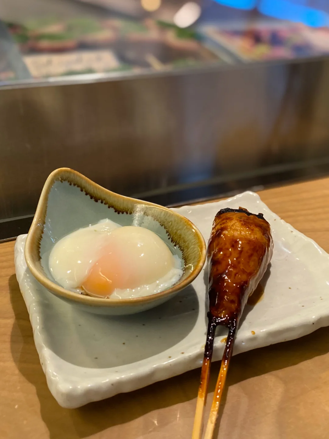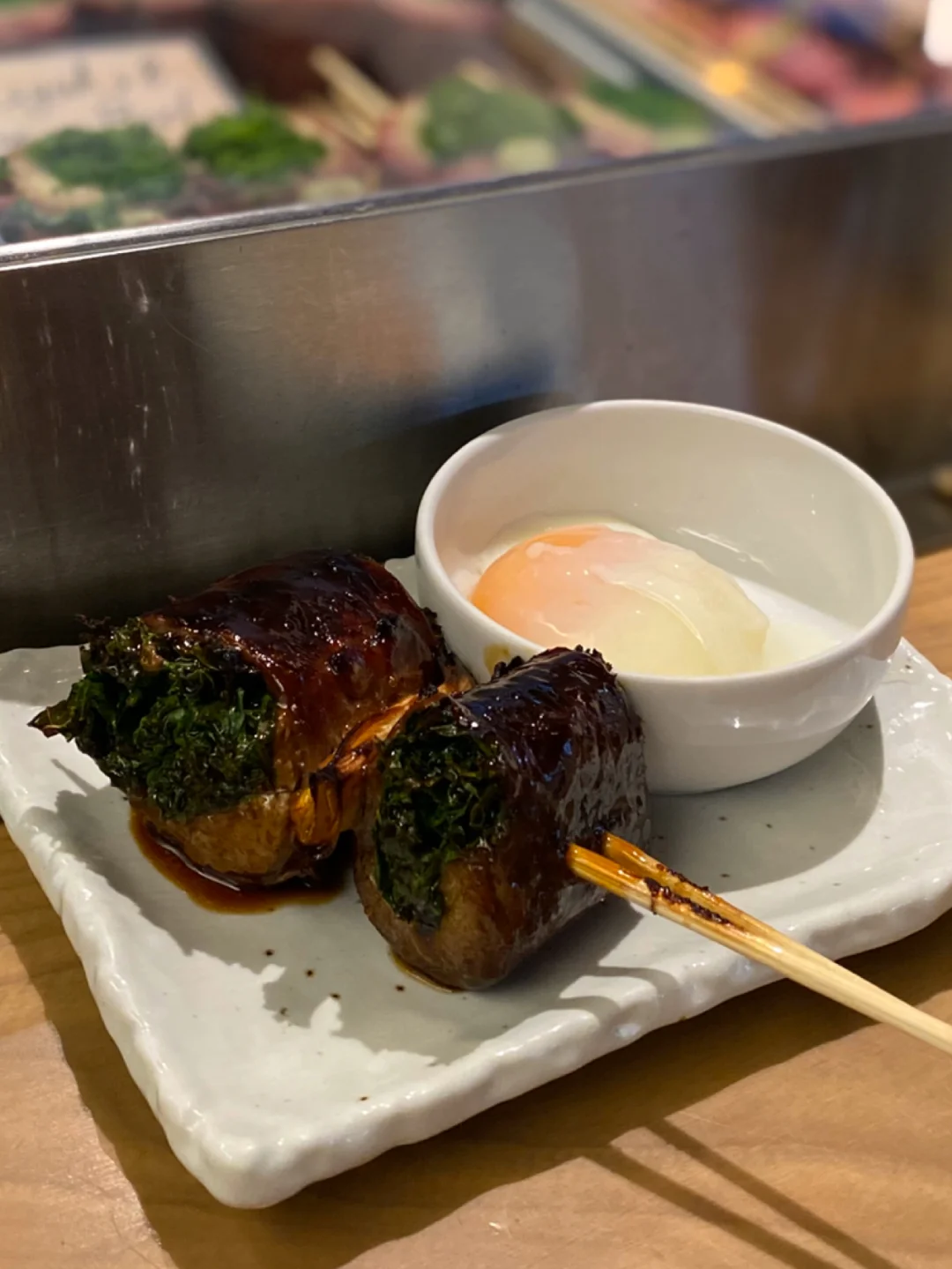 有一些大的肉串他们还有配糖心蛋可以蘸着吃,味道也很特别。我特别喜欢吃烤蘑菇❗️虽然只是蔬菜,但是也很惊艳,咬下去的时候里面超多汁水,爱了❗️哈哈