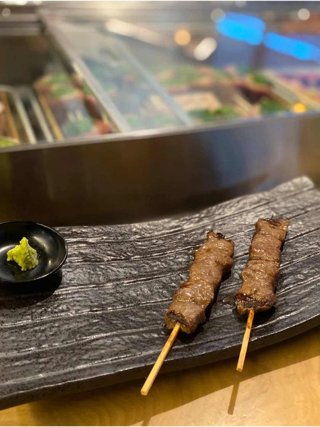 肉串都是直接放在吧台客人面前,大家可以很直观感受到肉的新鲜程度和烧烤方式[斜眼R][斜眼R][斜眼R]