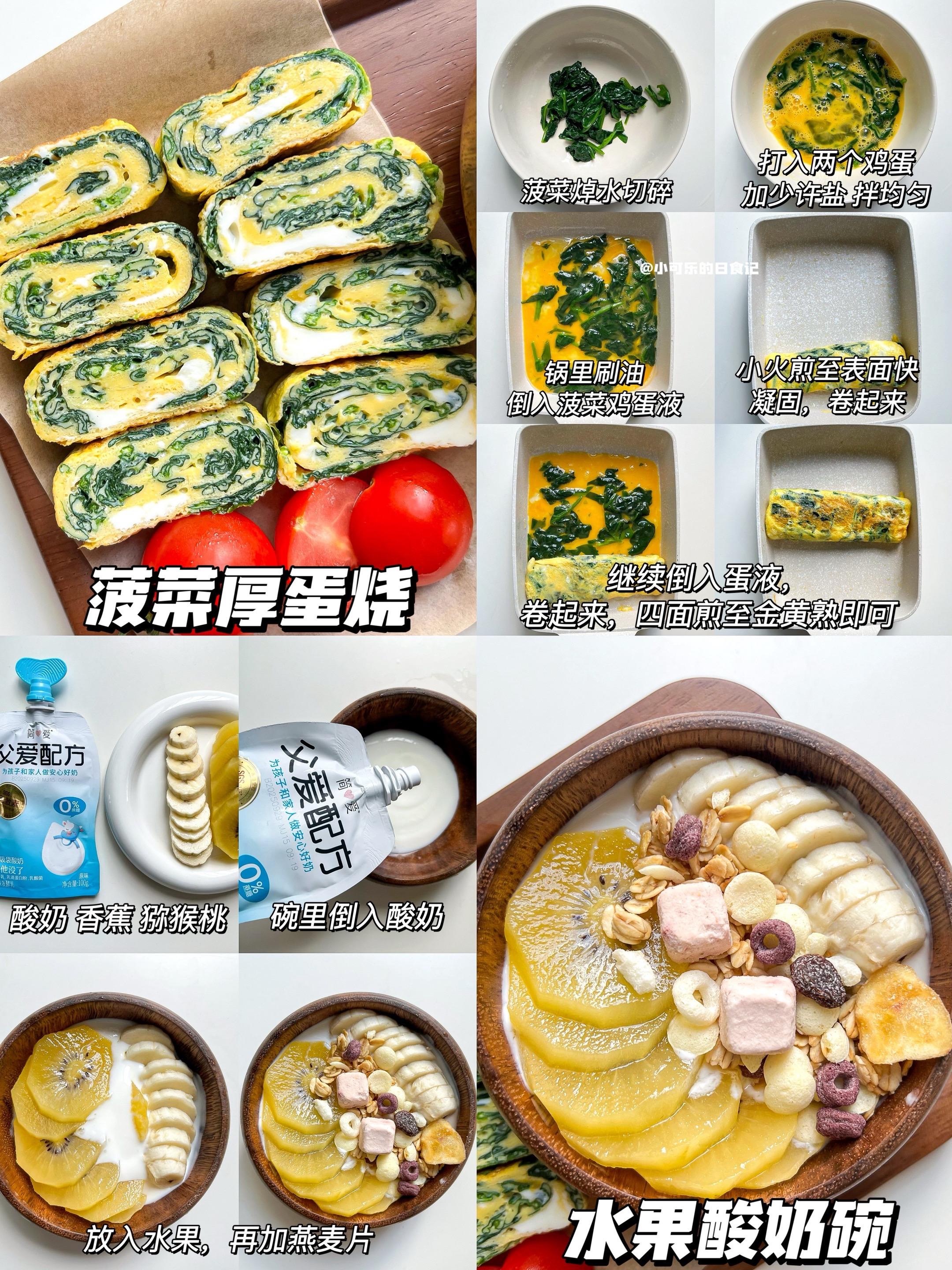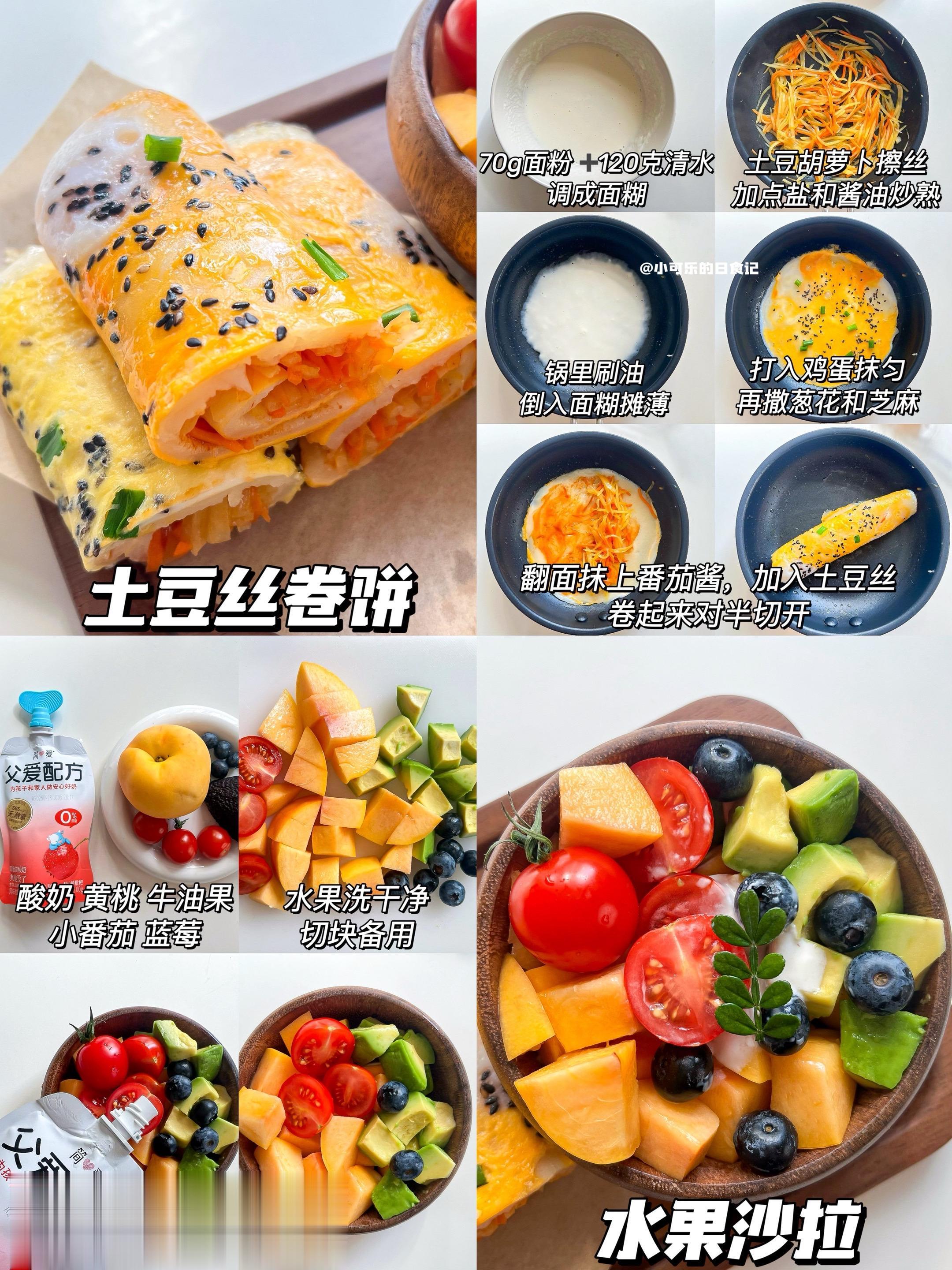 小朋友营养早餐,一周不重样 超好吃。小朋友的一周营养早餐搭配来啦,一天之计在于晨,小朋友们都要好好吃早餐哦。 营养搭配,简单好做,健康又好吃,每天美味不重样,轻松拿捏小朋友的胃,赶紧来抄作业吧,大小朋友都爱吃。 🥣早餐: 酸奶松饼+奶香玉米汁 秋葵厚蛋烧+香蕉燕麦酸奶碗 蒜香黄油吐司+牛油果奶昔 蛋奶小排包+蓝莓酸奶奶昔 时蔬鸡蛋饼+水果酸奶碗 土豆丝卷饼+水果沙拉 🔎详细做法请看图片