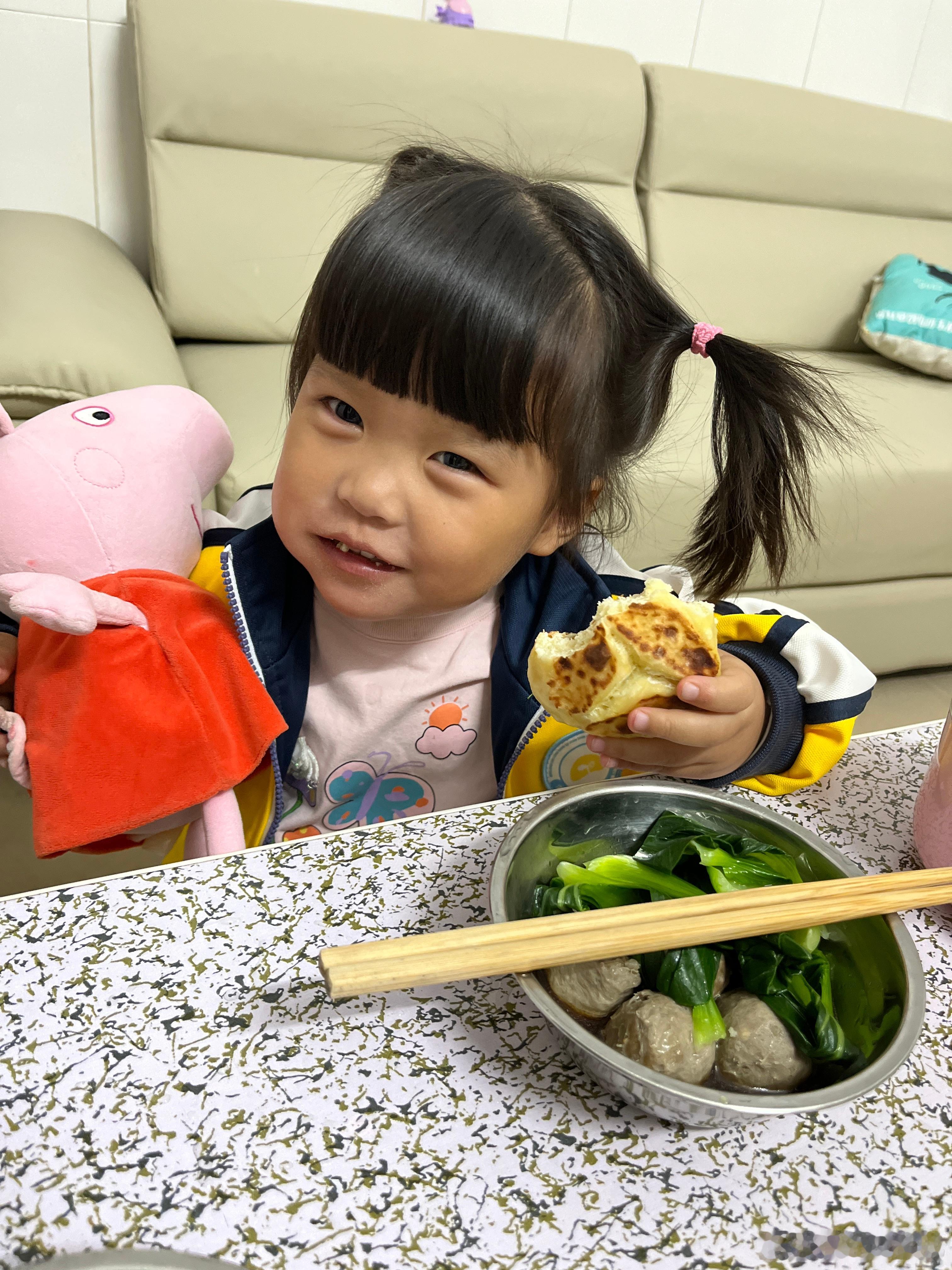 捧场王,她说要吃这个面包,说我做得好,叫我下次再努力,给我奖励。妈妈的好宝贝,不嫌弃妈妈做得不好,还鼓励妈妈,妈妈下次肯定做得更好的,说要像二姑做的一样。再煮个青菜肉丸汤,搞定。今天有太阳了,蓝蓝的天空。周深的歌太好听了。