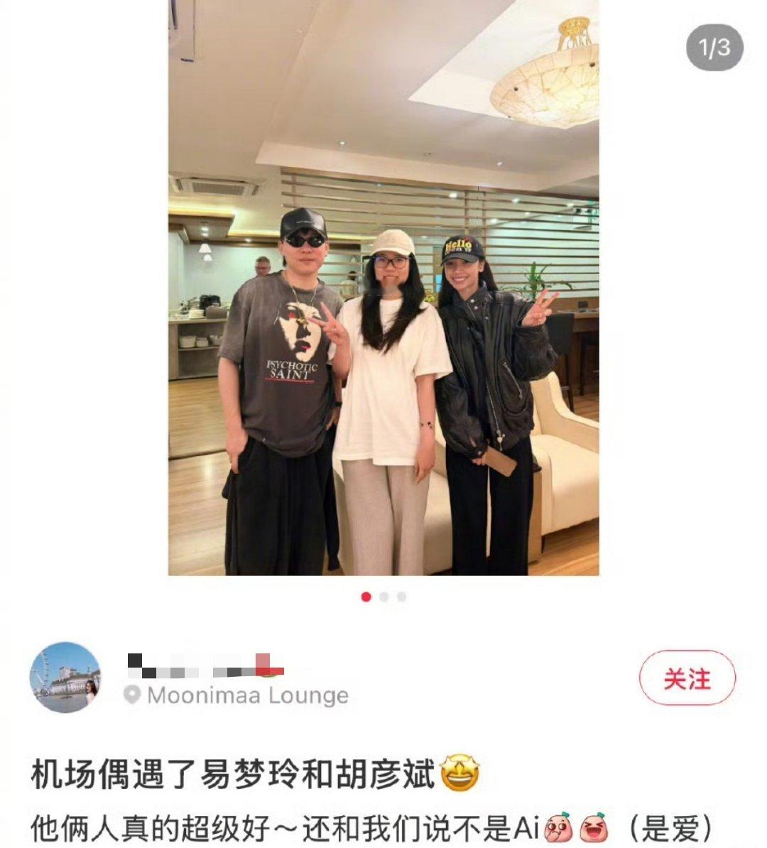 胡彦斌和易梦玲在机场和网友说“不是AI的”