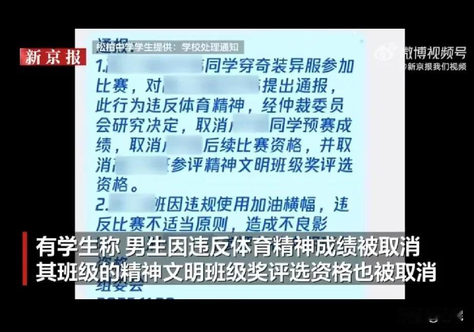 一中学男生穿裙戴假发跑步夺冠被取消成绩,连带班级精神文明班级奖评选资格也被取消。还以为,男生男扮女装参加女子组比赛夺冠。结果,人家只是cos,参加的也是男子组。难不成,裙子和假发有发射器助跑功能?让男生一律遥遥领先? 违反体育精神?不知道哪一条?如果不允许穿,为什么允许上场?允许上场了,参加完了,比赛结束了,秋后算账?个人行为还上升到班级上去,是不是有点上纲上线了? 仔细一想,体育精神的核心难道是着装统一?国际赛场上职业运动员染发扎马尾也不少,也不见得发型统一。 与其去强调统一规范,防范“无序创新”,倒不去提倡包容个性,通过沟通引导而非惩戒。关注赛场表现比起衣着符号来得更加重要,回归“更快、更高、更强”的体育初心。