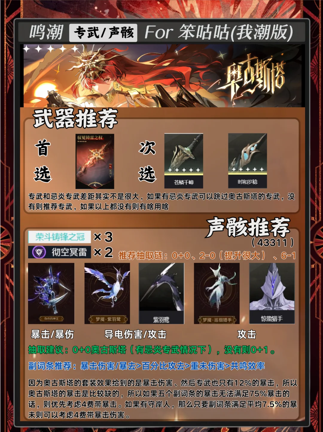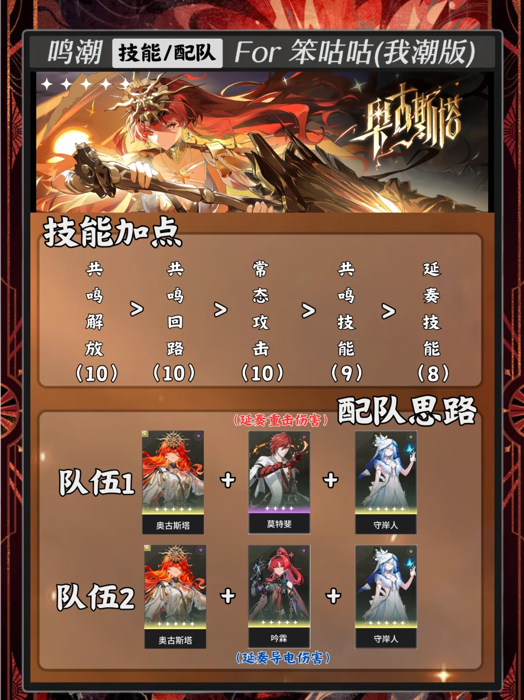 那笨咕咕本期内容带来的是2.6版本新角色奥古斯塔的培养攻略~ 内含专武/声骸/配队等内容~