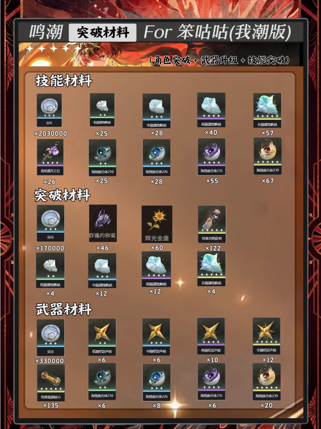 观看的小伙伴觉得不错的话一点要给个大大的赞噢!(内容制作数据相关参考鸣潮wiki,有错误引导,欢迎大家指教批评,笨某一定虚心接受!!)