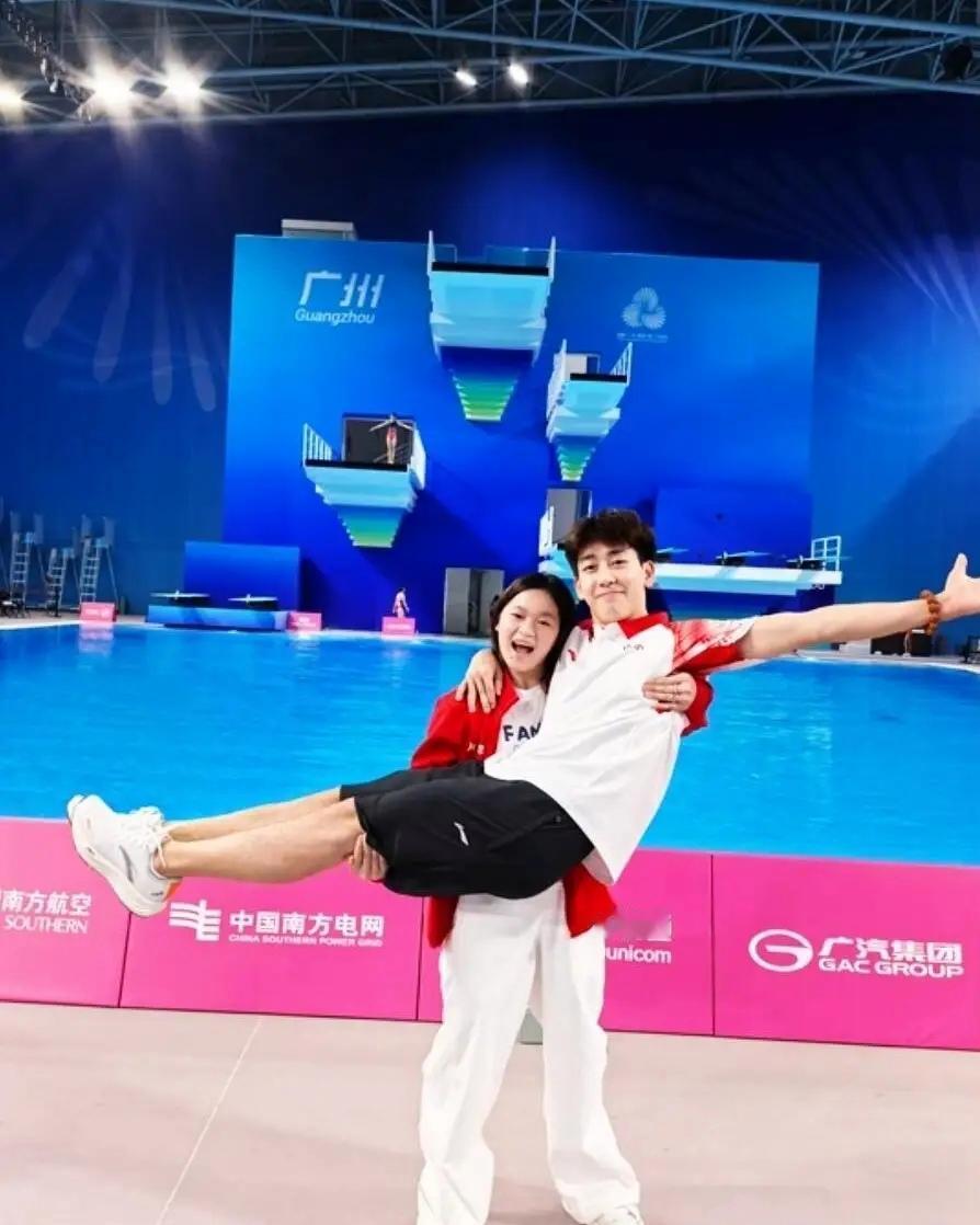 哇哦,可爱的全红婵长高长胖后,摇身一变成了大力士啦:瞧,全妹公主抱郑钧之与陈艾森简直就是轻而易举呀,赛场外的他们让人看到了跳水健儿最温馨友爱的一幕哈!