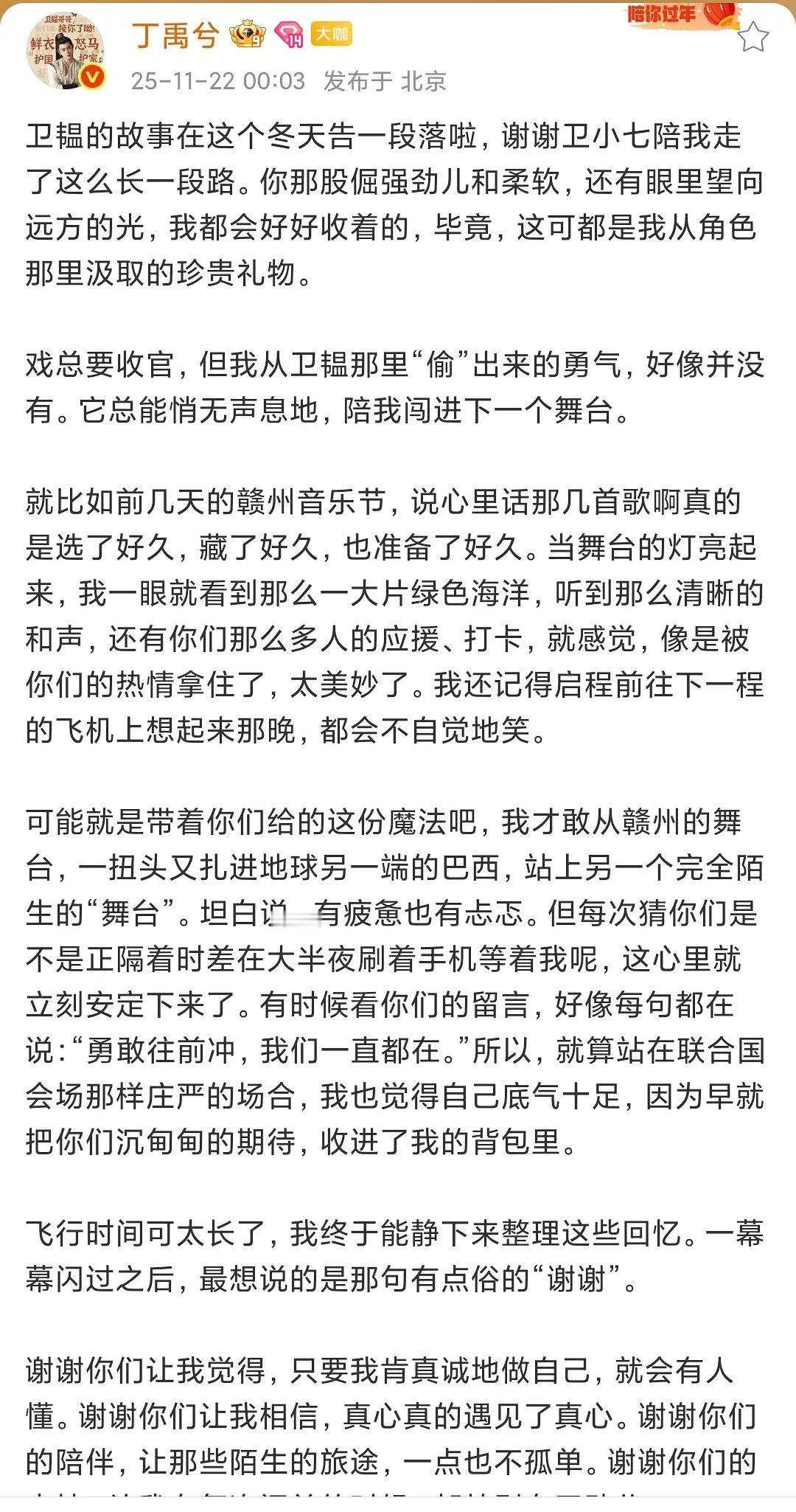 这是写给海棠的情书吧!!好真诚,字字句句都是对粉丝的爱,看吧,真的爱你的人就算跨