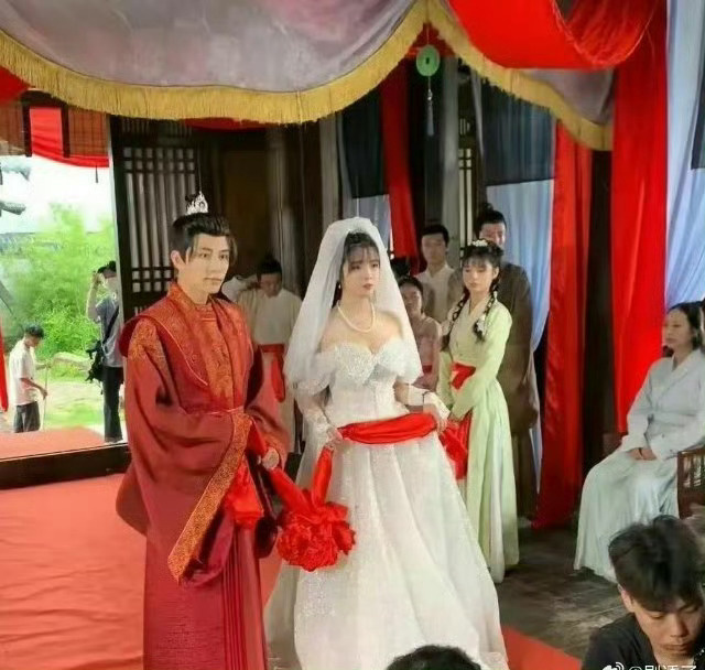 这个布景一看就是古装剧,但是这婚纱什么鬼?