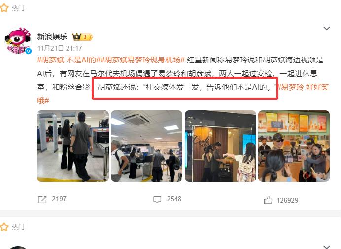 胡彦斌真是爱惨了易梦玲, 连最后的体面都不要了, 直接对着粉丝喊出:“社交媒体发一发,告诉他们不是AI的!这是要为自己宣誓主权啊!就这一举动,不得不说胡彦斌真的很爱易梦玲!从他在易梦玲身上花那么多钱,就看得出来胡彦斌这次认真了,两个人顺利的话,应该会走向婚姻的殿堂,毕竟胡彦斌已经老大不小了! 不过,面对易梦瑶的否认,最难过的应该就是胡彦斌了吧!毕竟网友都扒出了那么多细节,两个人的恋爱差点因为她的那句ia而毁了,幸好胡彦斌爱的深,赶紧出来要名分,晚了是怕易梦玲跑了吗?