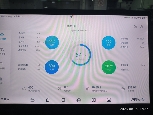宋plusawd600公里不熄火油耗 青岛回南京,压着限速110%跑,中间进了几次服务区吃了两顿饭但是未熄火未关空调,馈电开始馈电结束,6.58L/100km。驻车空调都从电里扣掉了,这应该是最不欢乐的表了。中间实验过,均速超过115的时候,油耗基本超过7,100-110时6L+,100以内就到5字头了