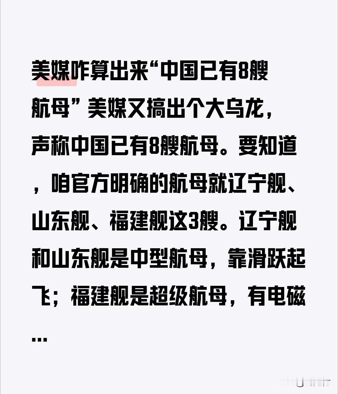 美媒咋算出来“中国已有8艘航母” 美媒何以算出“中国已有8艘航母”?美媒又闹了个大笑话,宣称中国已有8艘航母。要知道,我国官方明确的航母仅有辽宁舰、山东舰、福建舰这3艘。辽宁舰和山东舰为中型航母,采用滑跃起飞方式;福建舰是超级航母,配备电磁弹射。 美媒是如何算出8艘的呢?原来是将4艘075型两栖攻击舰和1艘076型首舰四川舰也归为航母。这种算法纯属“望图生义”,航母用于制海制空,是远洋作战的核心力量;两栖攻击舰主要用于输送兵力上岸、支援滩头作战。比如四川舰设有坞舱,其“主业”仍是两栖作战。美军自己常把“美利坚级”当作轻型航母,便看谁都像航母。美媒的这种误读,归根结底还是对中国海军发展过于敏感。