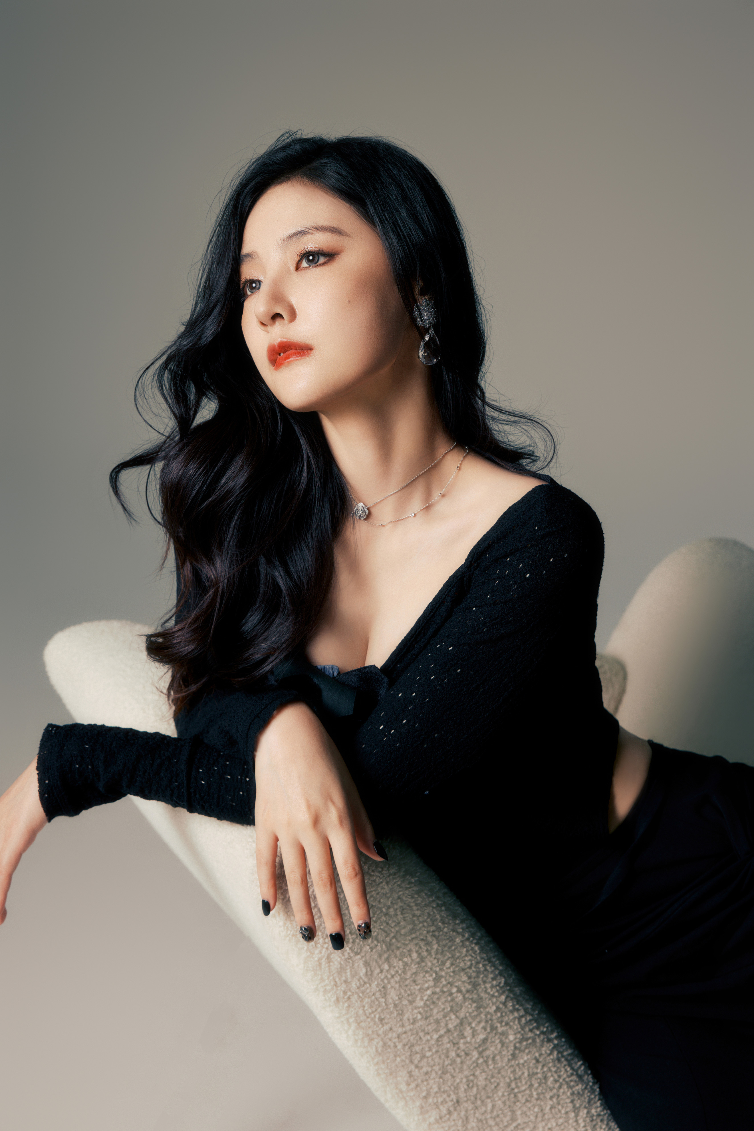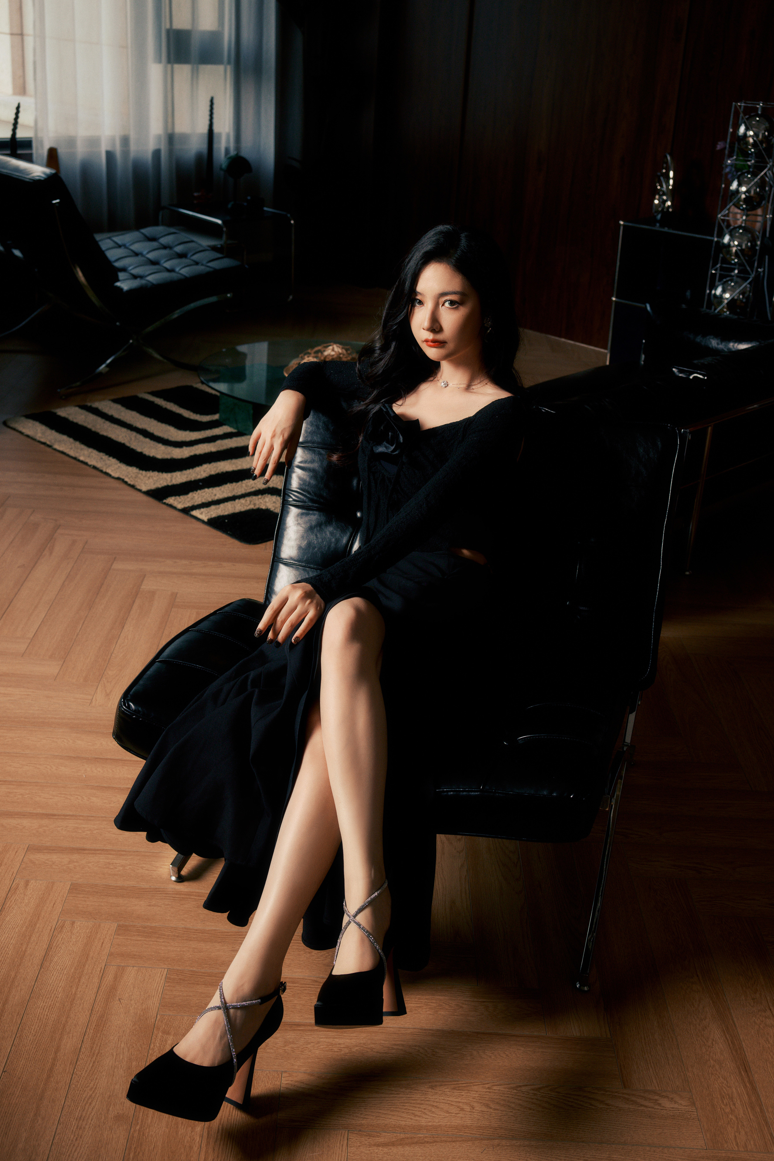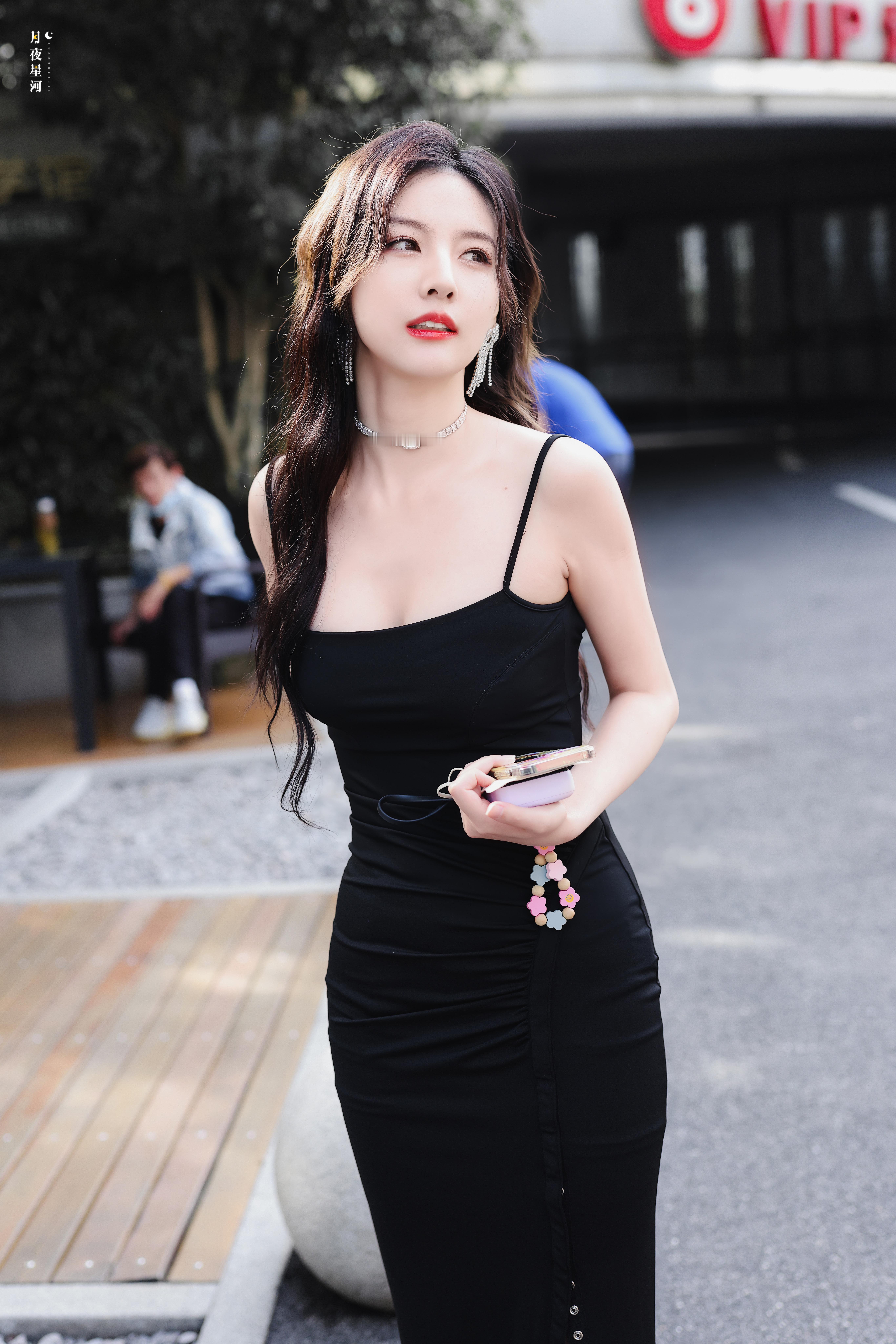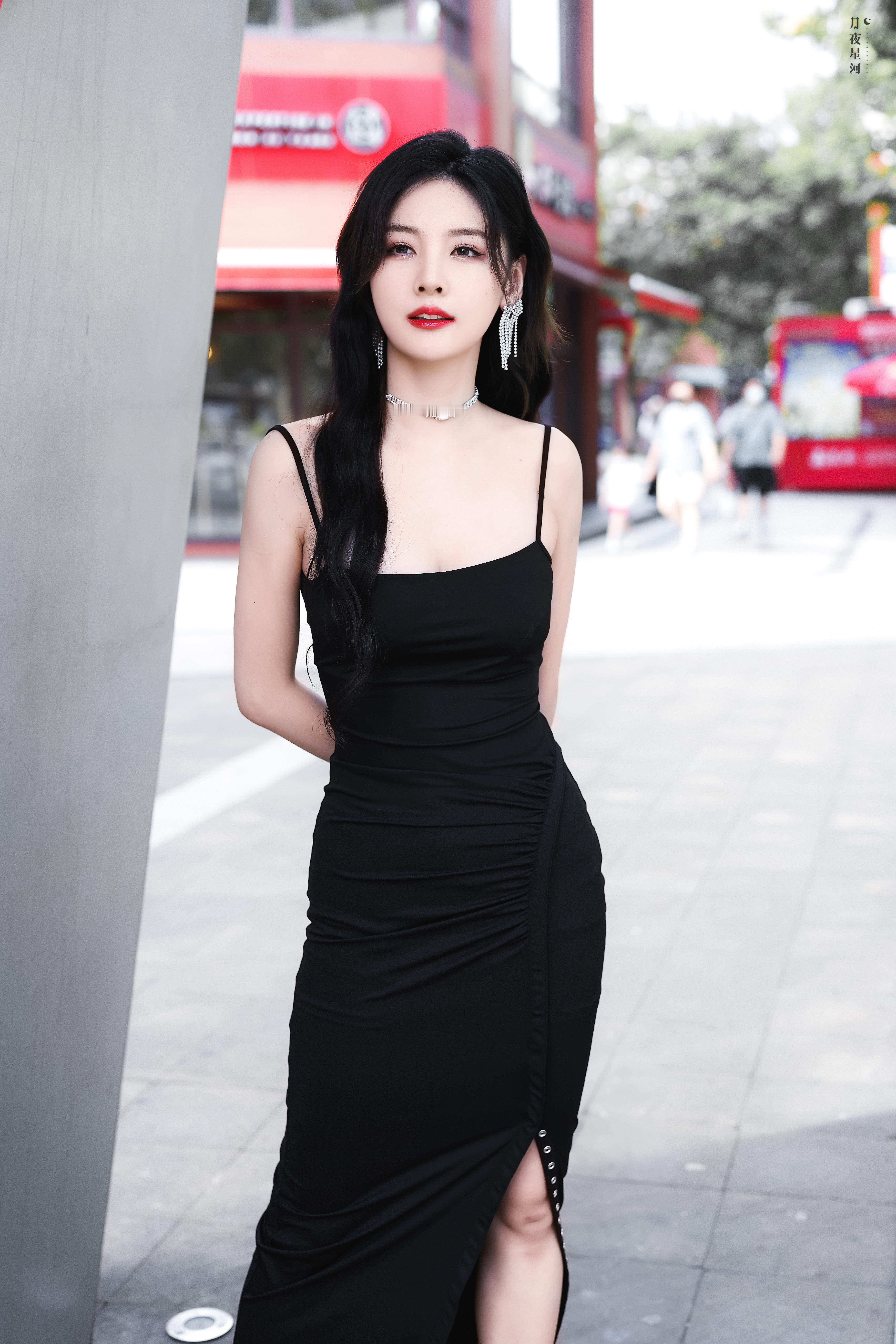 赵粤 黑裙裹着纤细的腰肢,吊带勾勒出优美的肩颈线条,眼神里藏着一丝漫不经心的诱惑,仿佛随时都能让人心神失守。