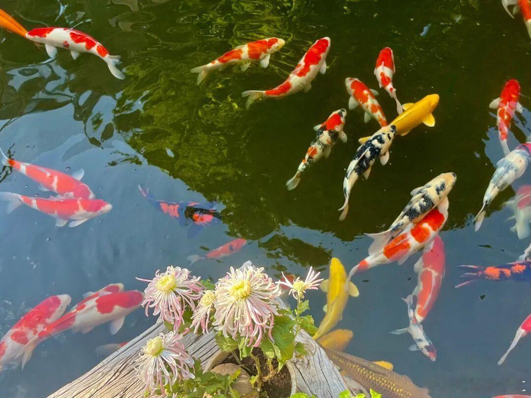 池水里,锦鲤们似打翻的色盘,红的热烈、黄的鲜亮、花的斑斓,在涟漪间自在游弋,把秋水搅成流动的彩绸。池边几簇粉菊悠然绽放,丝瓣如缕,香气悄悄漫进水里。一静一动,一香一影,在这方小天地里,秋的诗意被锦鲤与菊花酿成了一幅鲜活的江南小品,每一次鱼鳍的轻摆、每一片菊瓣的舒展,都在诉说着自然与生命的温柔共鸣。