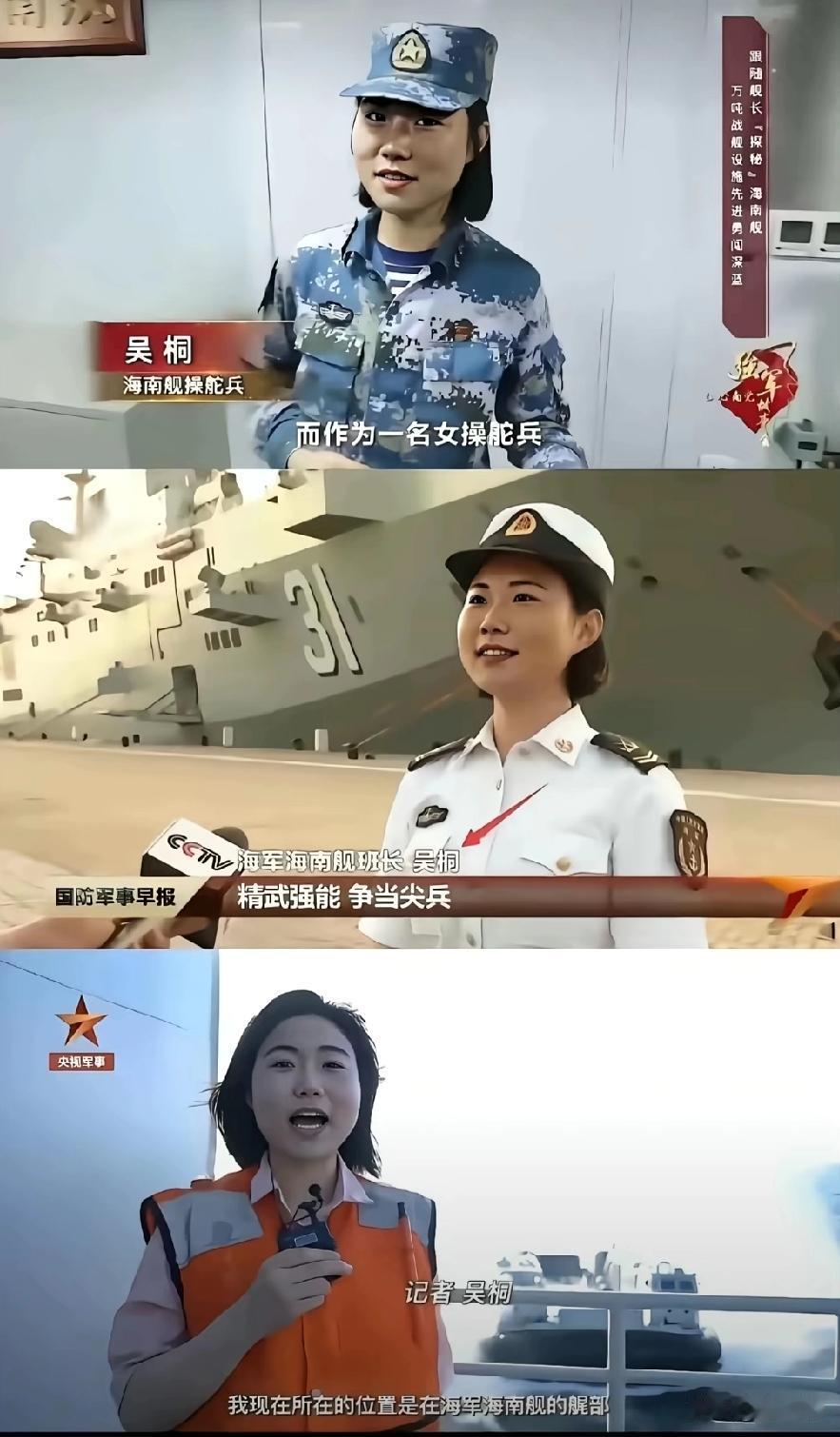 我是谁?百变怪! 图一是开船师傅穿不穿工作服的两个情景。第二个可以解释,兵升职当了班长,作为舰艇信息员采访当日兼职记者。她 退役入了cctv军事频道中心做记者!因为涉及军事机密比上大学新闻系的好用!这种退役的军人,知道什么可以讲什么可以问,一块砖嘛,哪里需要哪里搬! 操舵兵后来当了操舵班长,女兵兼职舰上的新闻报道员,宣传部门的素材被央视采用,老单位的很多新闻报道员上央视,写的都是记者